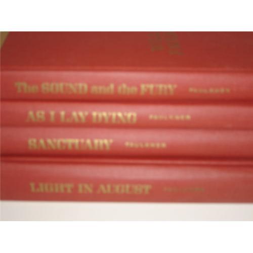 BY WILLIAM FAULKNER, THERE IS SET OF FOUR RAMDOM HOUSE. THESE TITLES ARE HARD TO FIND AND THIS CONDITION. THE SOUND OF FURY, LIGHT IN AUSUST, AS I LAY DYING, AND SANCURARY.THESE WERE IN THE 1950'S ARE VERY NICE FOR COLLECTOR. THIS A VERY HARD TO FIND IN THIS SET.