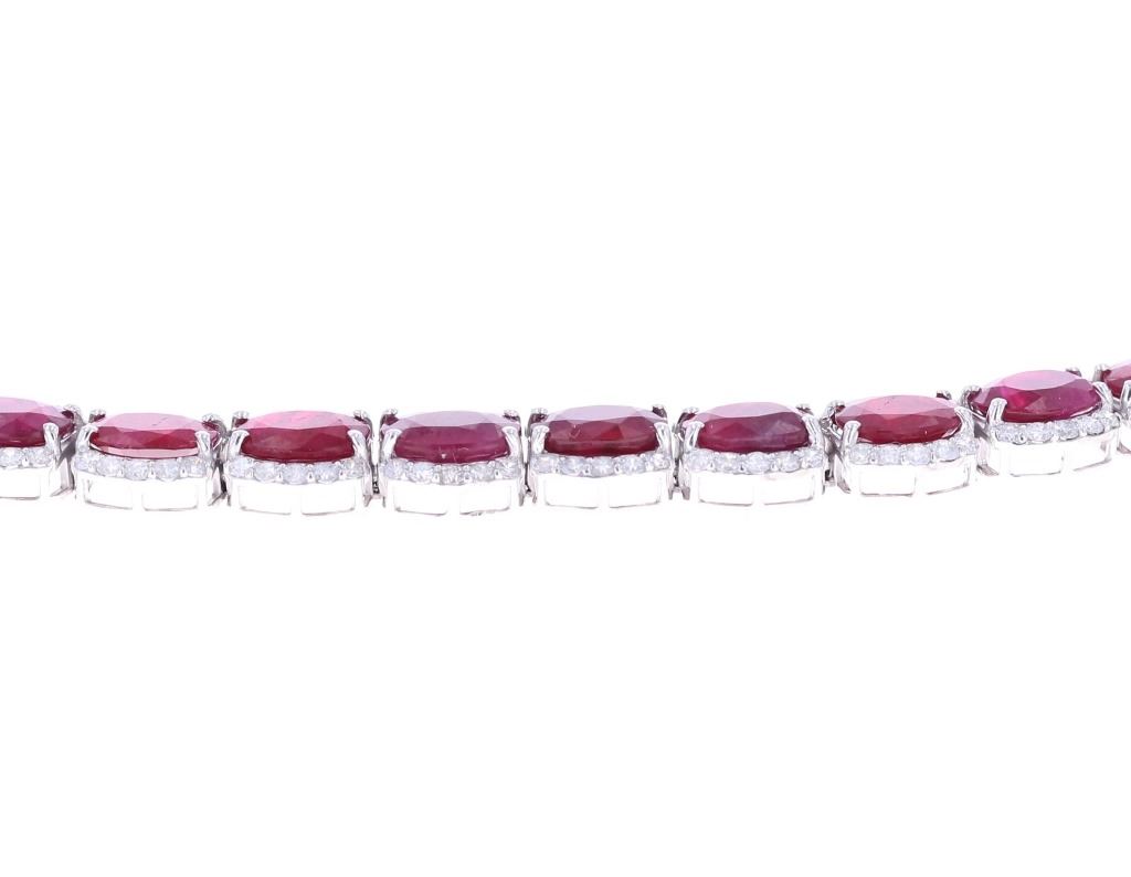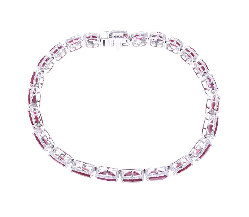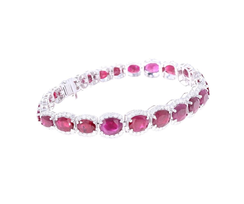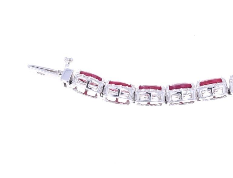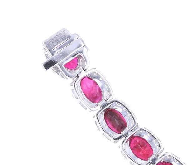 Featured in this lot is this rare Burmese ruby and VS2 diamond platinum bracelet with AIGL and GIA paperwork. The bracelet features a polished, stamped, and tested platinum construction that is marked as follows: Oscar Friedman - PT950. The bracelet features a total of 24 total Burmese rubies that shows measurements of 5.5 x 3.9 - 8.2 x 6.2mm that shows red color with a total weight of 23.28 cts. The center stones are decorated with a total of 218 round brilliant cut diamonds with measurements of 1.3 - 1.8mm and shows clarity of VS2 - SI2 and a coloration of G - H and a total diamond weight of 3.13cts. The measurements of this bracelet from clasp to clasp is 7 3/4". The piece comes complete with AIGL Inc.(American International Gemological Laboratories, Inc. a GIA certified lab AIGL#: K12E578-EA19560) report and appraisal confirming the above info and giving a total value of $44,000.00. GIA (Gemological Institute of America) Ruby Grading Report#: 5234194414.