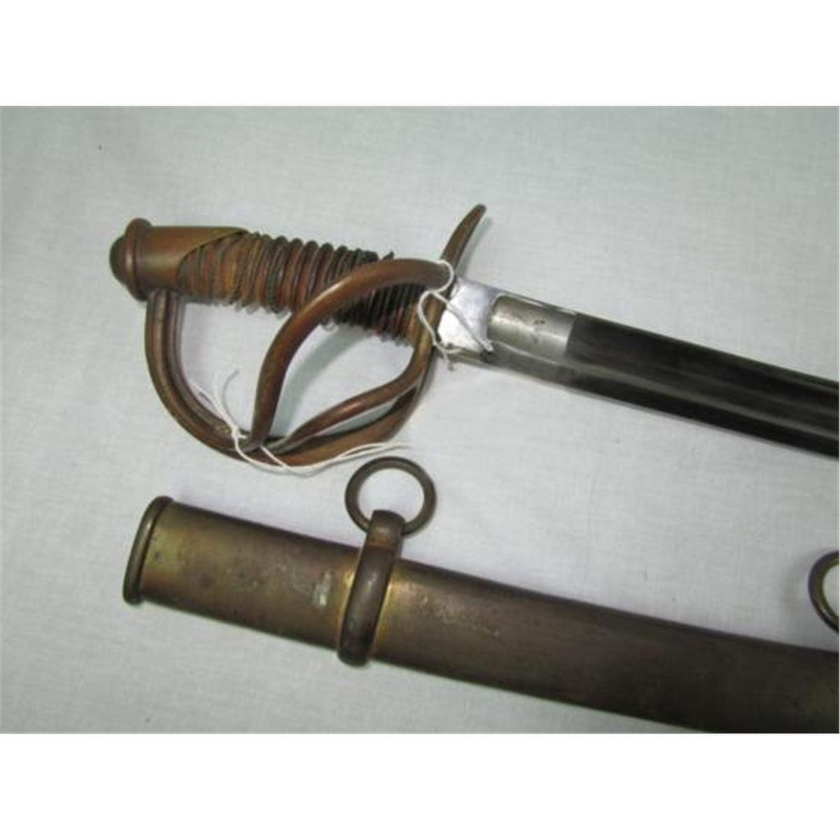 MWF1230 C. Mammond: So rare a Civil War sword that few collections have one, but even more astonishing is the fine to near mint condition of its bright unaltered blade.Scabbard is also in great shape, nearly flawless even of the smallest dent.Original wire wrap, wood grip. You~ll find this sword in various books on Confederate swords by William Albaugh. Whether made in the North or theSouth is a conjecture but there is no question that many of those known wereused by CS soldiers.