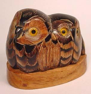 RARE CARVED WATER BUFFALO HORN - OWLS