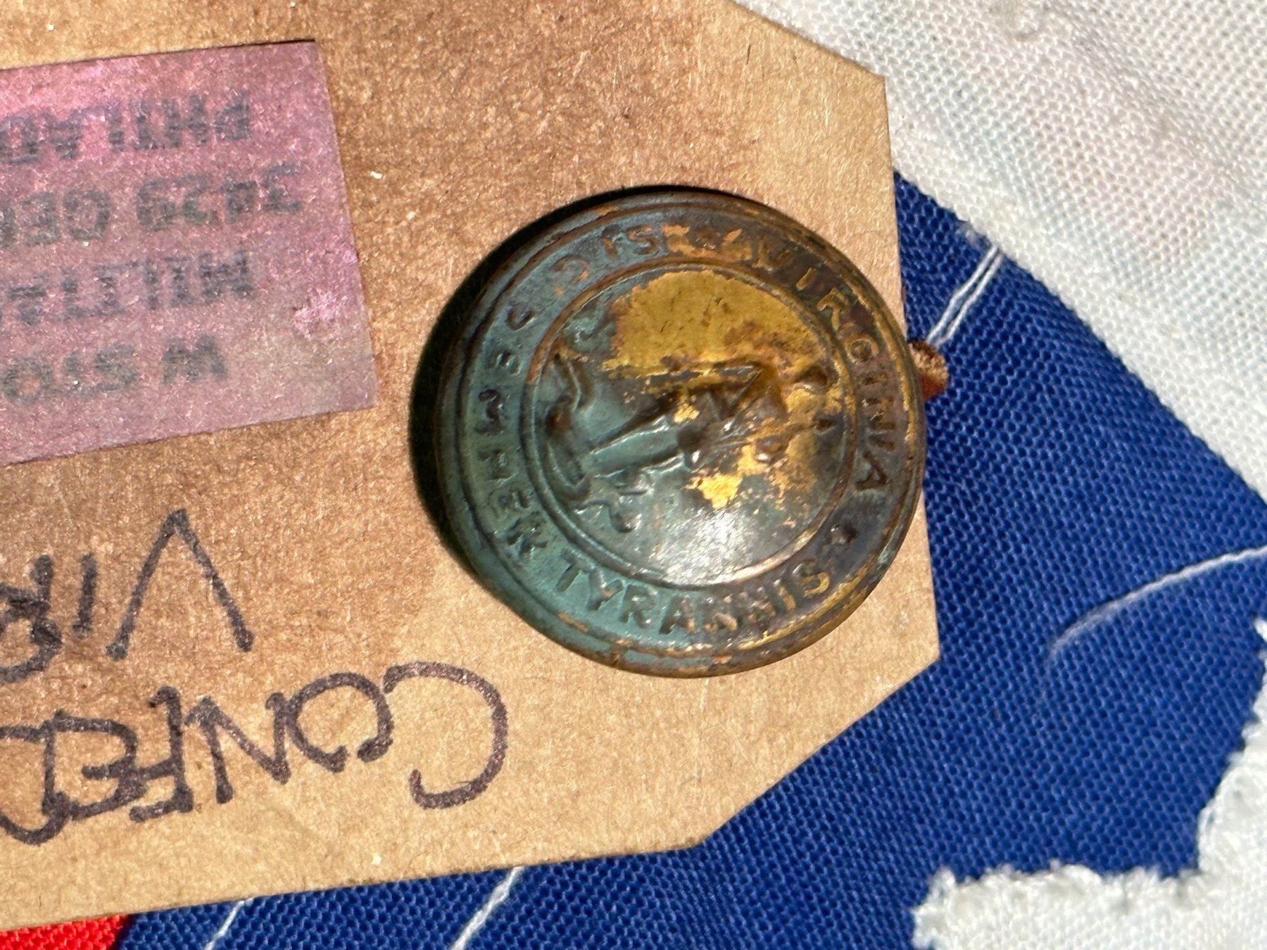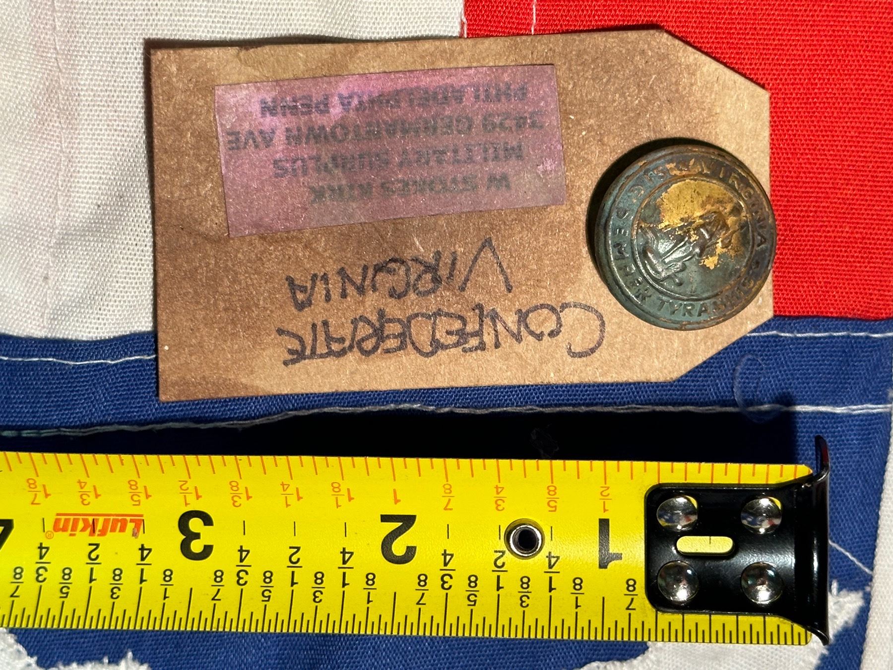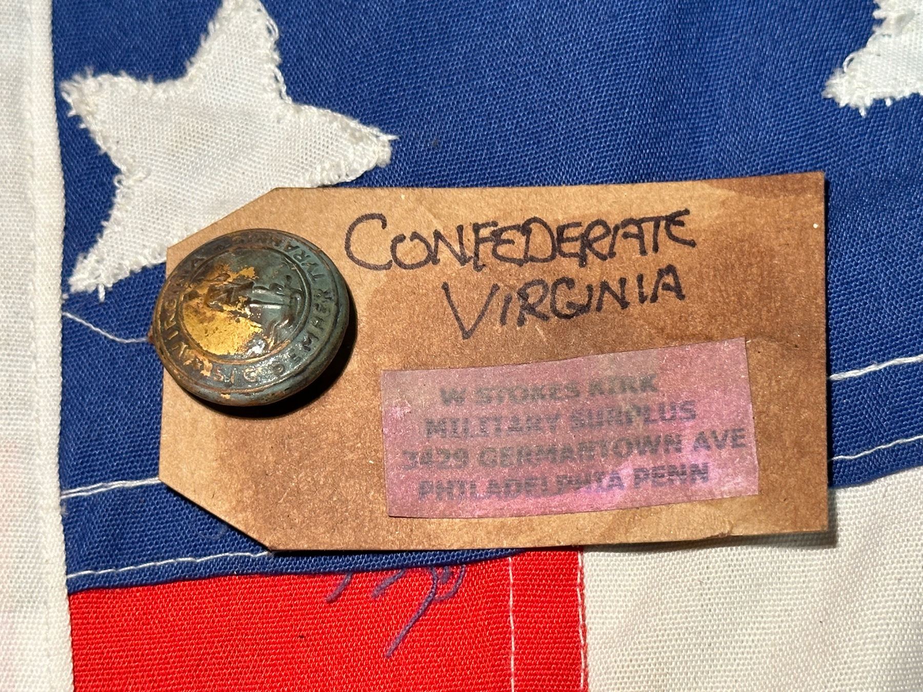 RARE CIVIL WAR CONFEDERATE VIRGINIA BUTTON BY W. STOKES KIRK. IT IS IN MINT OVERALL SHAPE AND CONDITION WITH A BEAUTIFUL OVERALL PATINA. A GREAT FIND AND AN EXCELLENT ADDITION TO YOUR COLLECTION.