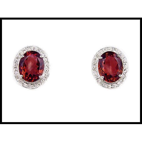 Magnificent raspberry natural tourmalines are candy for the eye. The vivid color and ultra-high brilliance is seldom matched in precious gems. They have combined weight of 5 carats, and measure 10mm x 8mm. The 18K solid gold earrings measure 14mm x 12mm (9/16" x 7/16") including the border of 42 sparkling diamonds. French backs allow for comfortable wear close to the ear. Retail price was $2,000.00.