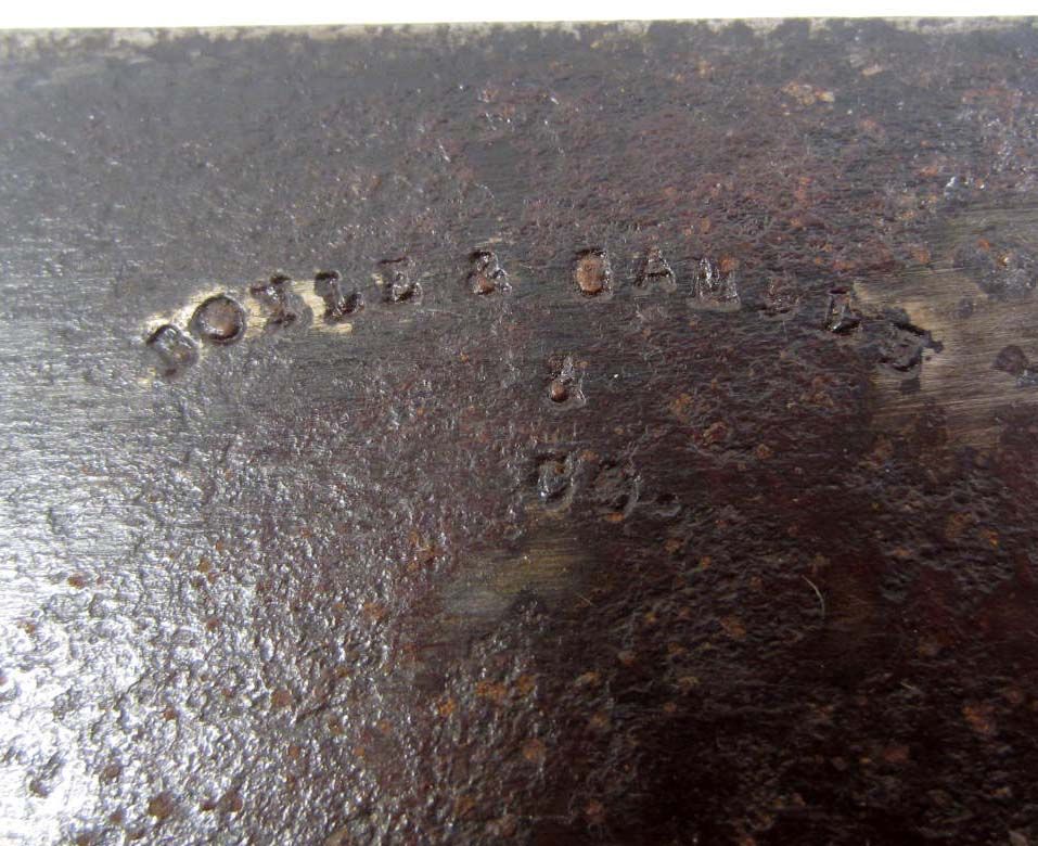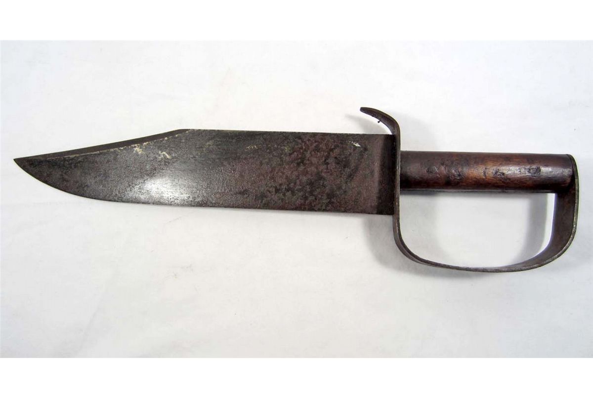 Steel blade is maker marked Boyle & Gamble & Co on one side & CS 1864 on the other. Approx. 12 7/16" long by 2 5/16" wide. Has an oak wood handle w/ a steel D guard.
