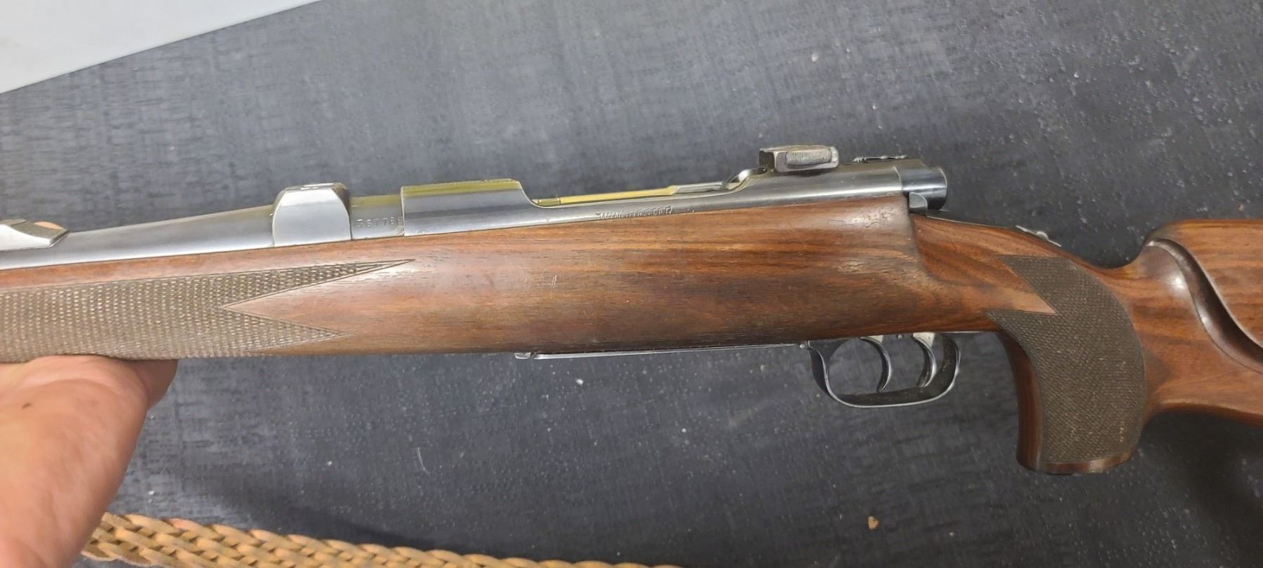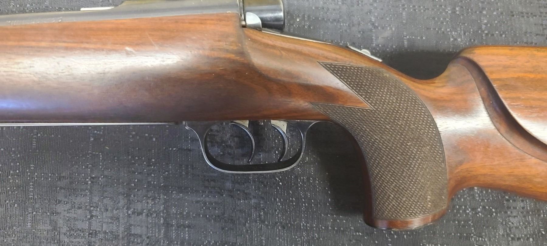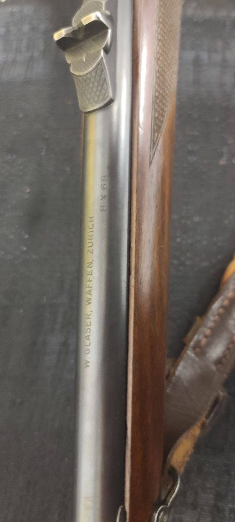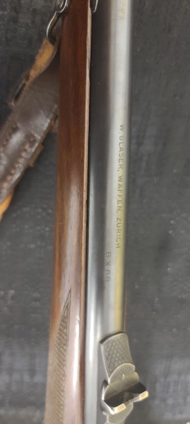 FAILED TO FIND ANOTHER RIFLE IN 8X68S CALIBER AND A WINCHESTER PRE -64 ACTION AND IT COULD VERY WELL BE THE ONLY ONE EVER MADE. 8X68S BALLISTICS ARE IMPRESSIVE FROM 150 GRAIN @3450FPS, 187 GRAIN @3100FPS TO