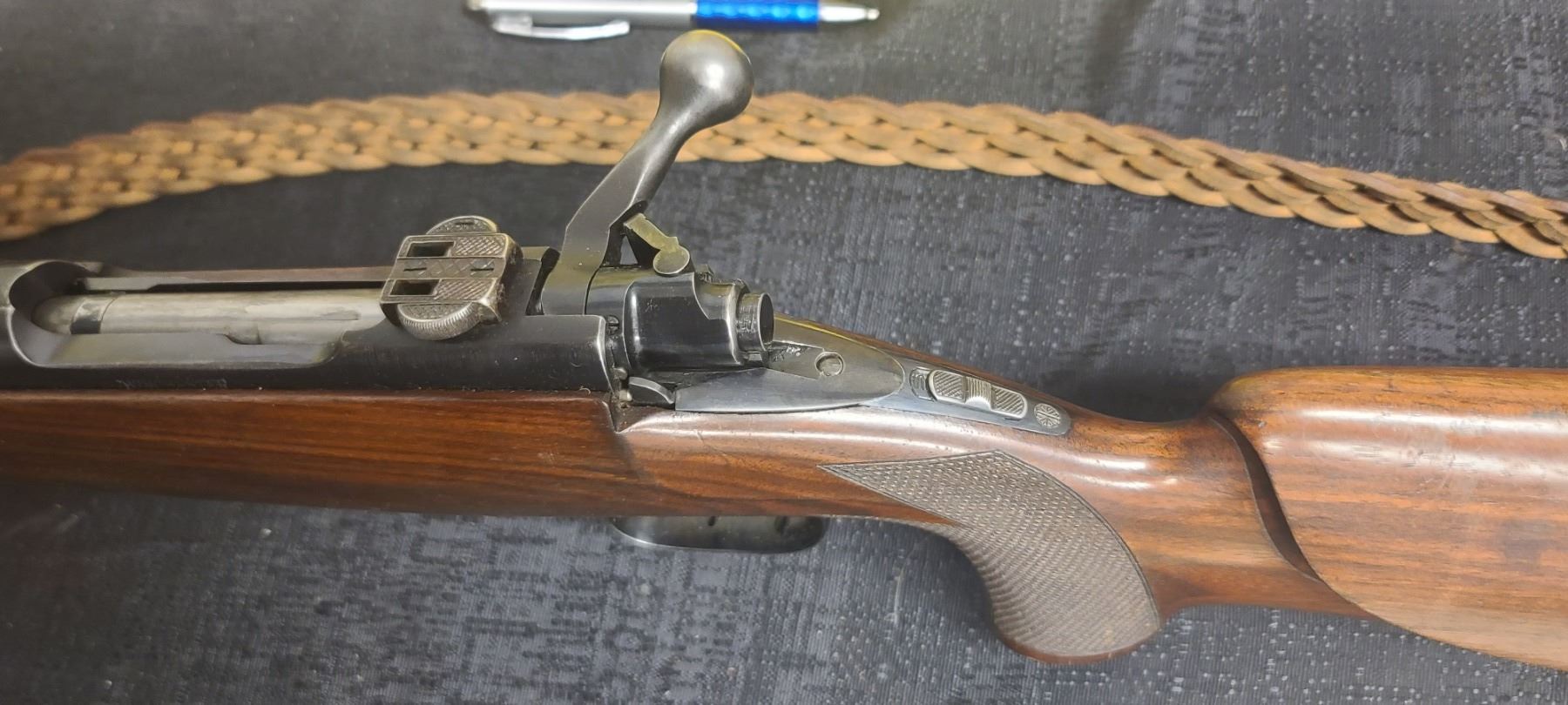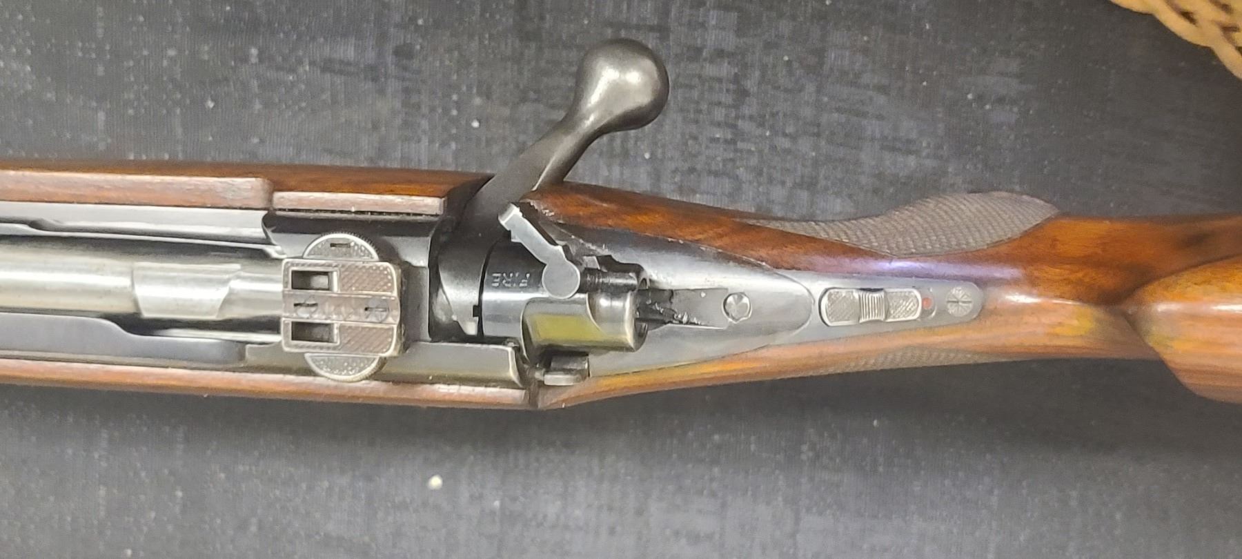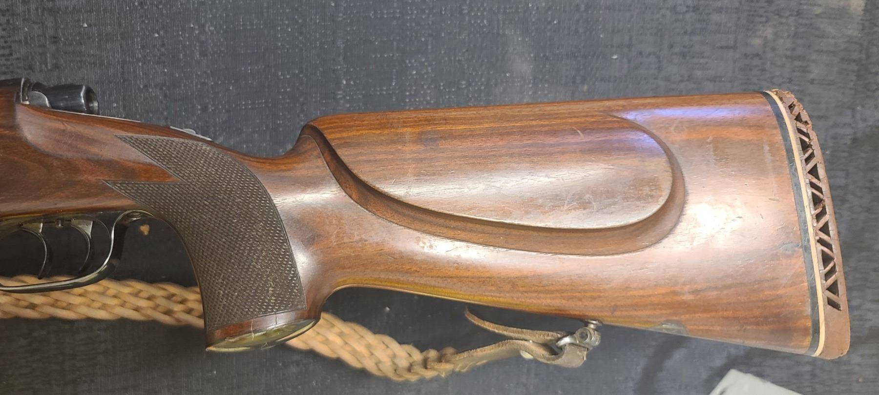 FAILED TO FIND ANOTHER RIFLE IN 8X68S CALIBER AND A WINCHESTER PRE -64 ACTION AND IT COULD VERY WELL BE THE ONLY ONE EVER MADE. 8X68S BALLISTICS ARE IMPRESSIVE FROM 150 GRAIN @3450FPS, 187 GRAIN @3100FPS TO