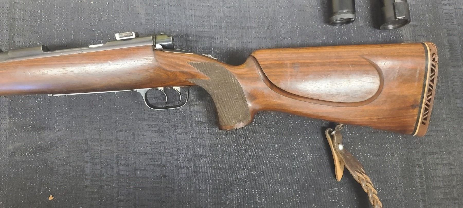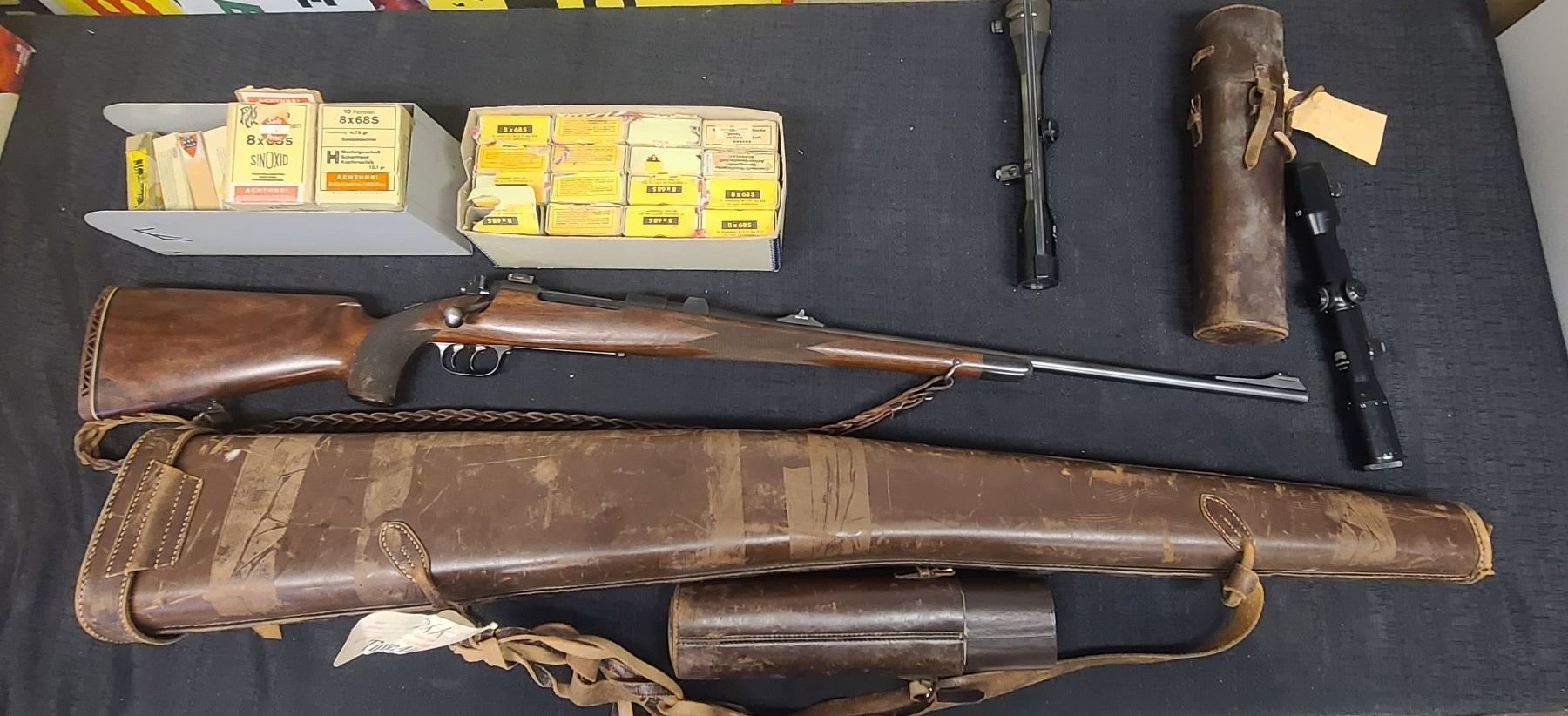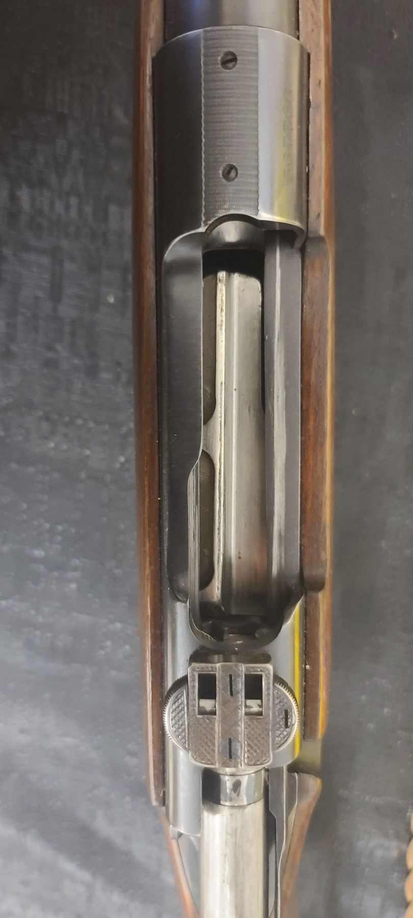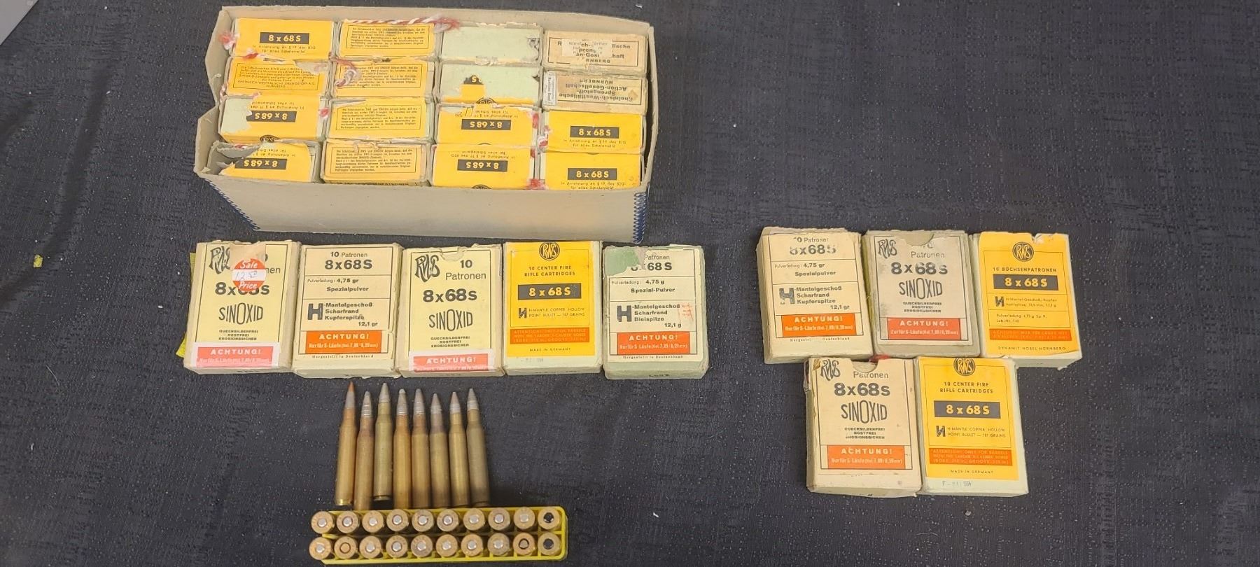 FAILED TO FIND ANOTHER RIFLE IN 8X68S CALIBER AND A WINCHESTER PRE -64 ACTION AND IT COULD VERY WELL BE THE ONLY ONE EVER MADE. 8X68S BALLISTICS ARE IMPRESSIVE FROM 150 GRAIN @3450FPS, 187 GRAIN @3100FPS TO
