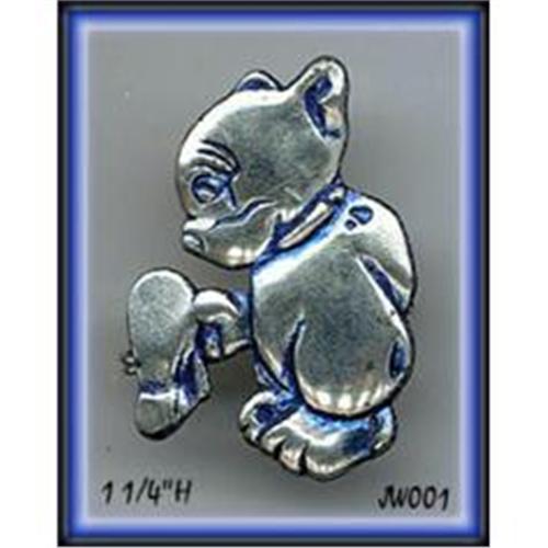 Lovely stamped silvertone metal "Bonzo holding shoe" pin. This rare character pin was discovered amidst a lot of unused Czech costume jewelry from the pre WWII Era. Impressed design lines are enamel painted in blue, reverse side is stamped with number 368, safety pin style closure. Excellent condition, Czechoslovakia c. 1930's. Dimension : 1 1/4" H. Please Note : The color of the pin is silver and blue, the picture color is not accurate.