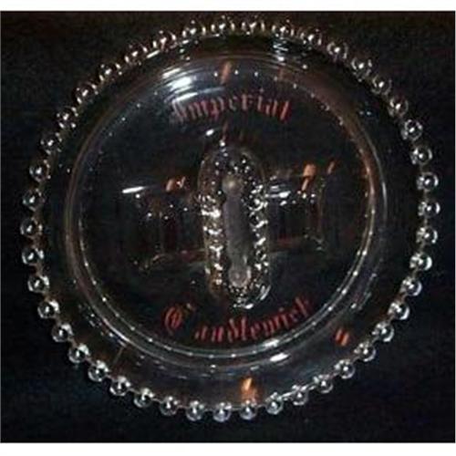 This STUNNING and quite RARE Crystal Candlewick Red Lettered Ashtray is in SUPERIOR condition with no chips, cracks, or dings and it measures 6" in diameter and stands .75". It is painted with red lettering that read "Imperial" and "Candlewick". It is manufactured by Imperial Glass Company and is Imperial #400/60.