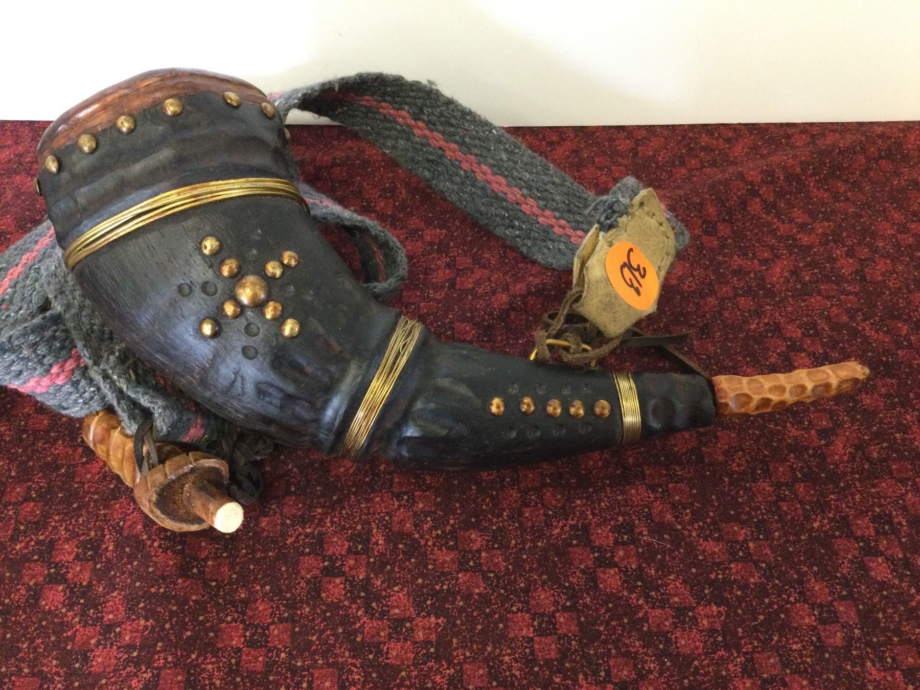 You are bidding on a fantastic carved Buffalo Horn Powder Horn, a great addition to any collection. NOTE: Buffalo Horn is a RARE find!