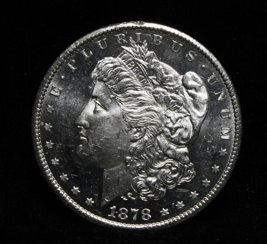 Exceedingly Rare Deep Mirror Proof Like Carson City Morgan. Very Close to ms64, actually I think ANACS and ICG would make it a 64 and PCGS and NGC a 63. Nice Deep Mirrored Fields. The strike is very good. This coin has it all, DMPL, Carson City and First year of the series. Coin World's Coin Values lists ms63 DMPL at $1500. The Wholesale Greysheet lists ms63 DMPL as $1350 and ms64 DMPL at $2460. Estimated Value $1750.