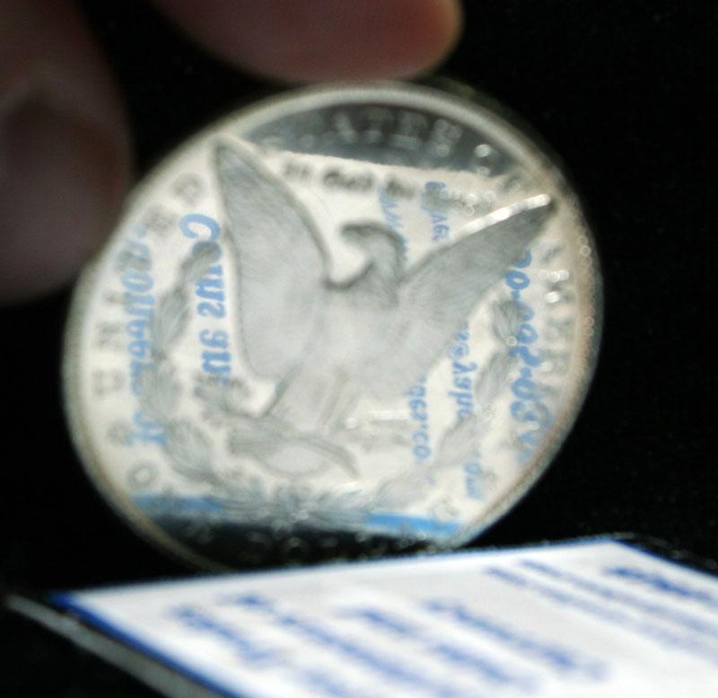 AN AUCTION HIGHLIGHT. A Deep Mirror Proof Like Carson City Morgan Dollar with Frosted Devices and Great Deep Mirrors. A beautiful Coin. and Very rare. Coin World's Coin Values lists ms64 DMPL at $3600 and The Wholesale Greysheet lists ms64 DMPL at $2400. Estimated Value $2500.
