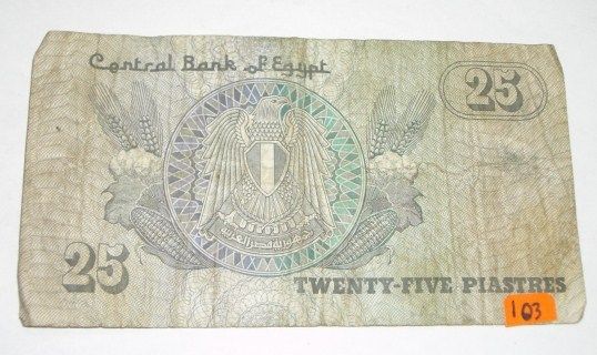 RARE EGYPT 25 TWENTY-FIVE PIASTRES BILL *PLEASE LOOK AT PICTURE TO DETERMINE GRADE*!! ***Coin, Currency & All Items Listed in this auction - Grades, Conditions and Values are not Safe Deposit Coins LLC Responsibilty. Grades, Condition and Values are determined by Consigner(s) & Buyers ONLY