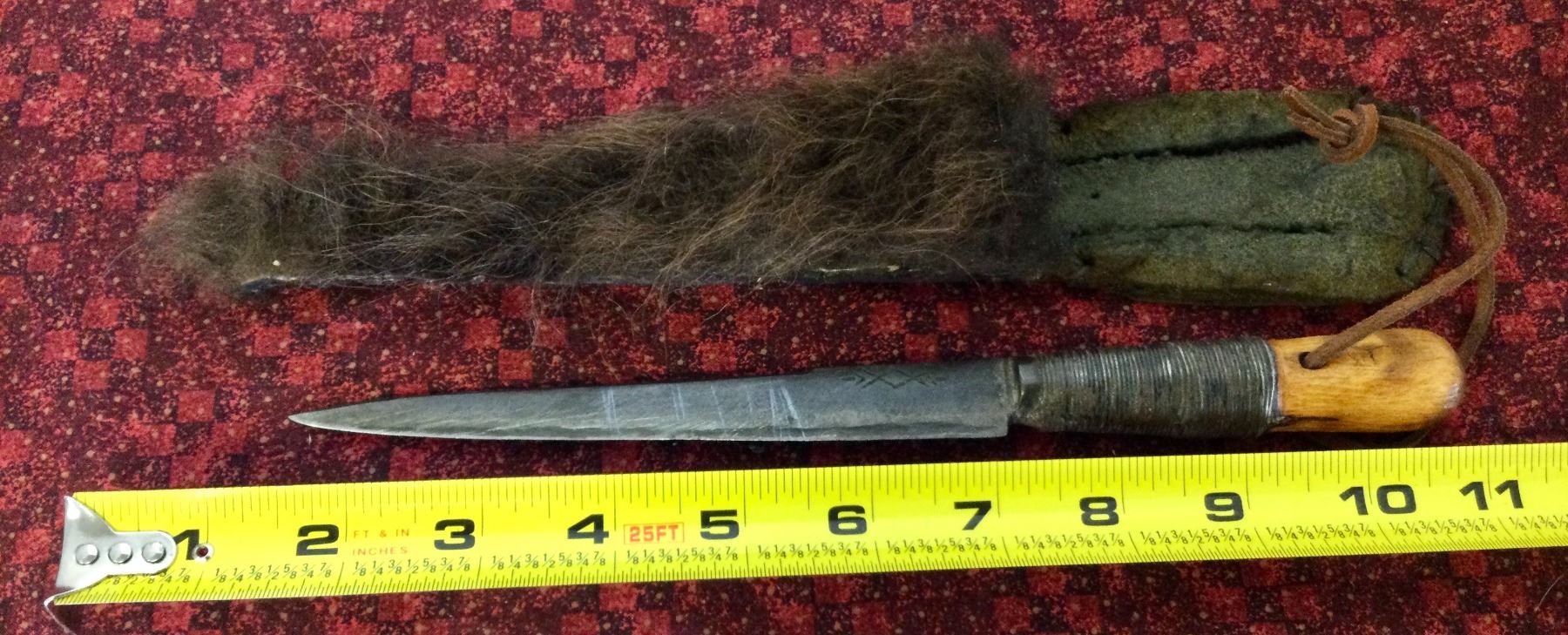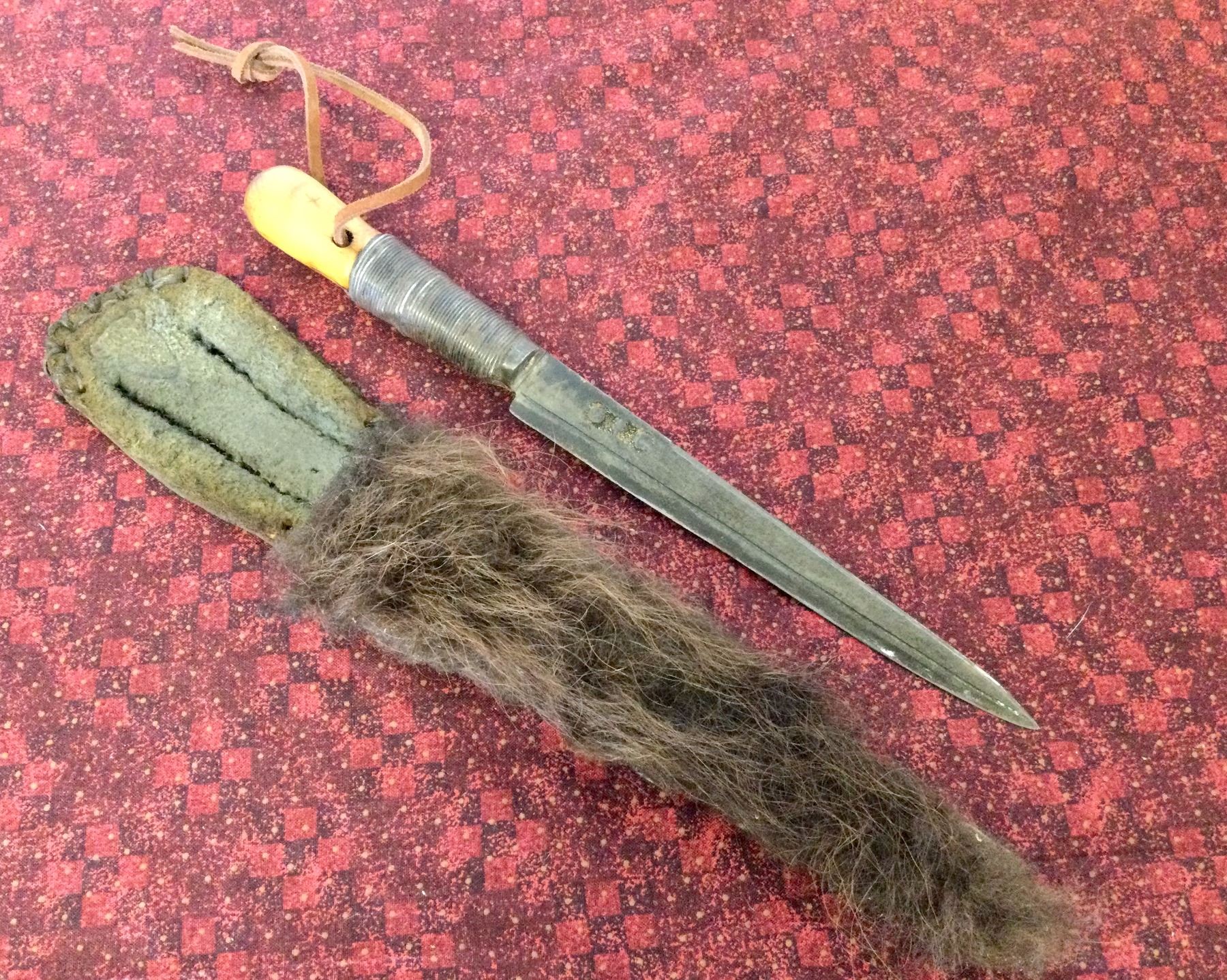 You are bidding on a superb 1840's circa handmade knife in a beautiful skin sheath, a great addition to your collection