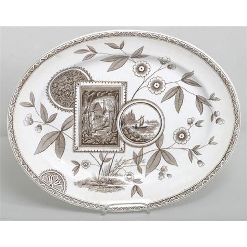 RARE c.1880's Small Eastlake Brown/White Transfer Platter. Excellent Mint condition.