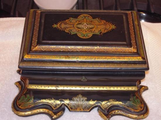 RARE! European Victorian Hand Painted Jewelry Box Victorian, late 1800 On bottom of box is original antique tag. Aprox 9.5 inches wide and 7 inches deep.