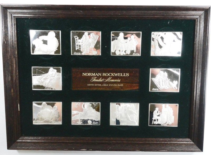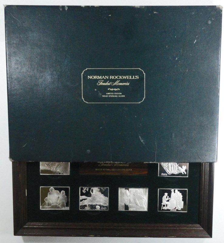 COMPLETE SET OF 10 3.2 Oz SOLID .925 SILVER INGOTS IN ORIGINAL DISPLAY WITH DUST COVER, SET IS FROM THE 1970'S ESTIMATE, $650.00 TO $700.00