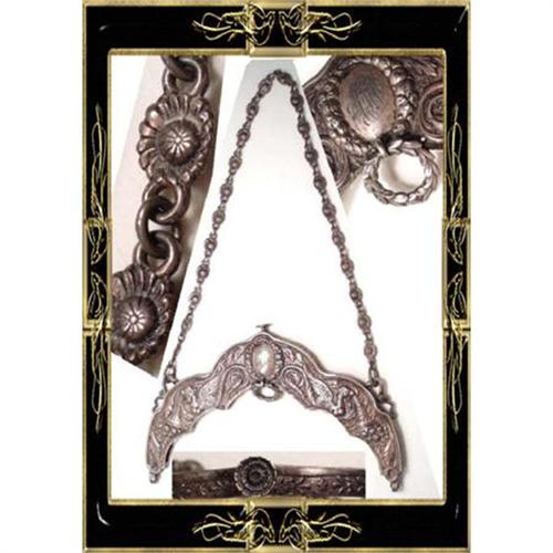 This RARE 1860?s solid sterling Gorham double purse frame and florette chain is adorned with TWO serpents to hold the chain, four large griffins or winged dragon like creatures which each hold a long horn full of flowers and roses. I have never seen another like this ( and Gorham frames are VERY VERY hard to come by. Truly a specially commissioned piece that was for someone very high in society. Although Gorham is probably more well known for their flatware and serving pieces, they also produced incredibly rich and fabulous silver smalls, as well as purses and purse frames .Other than Tiffany, Gorham was THE best in silver and this one tops them all. Surely a museum piece, this has its original thick solid sterling florette chain with hand soldered thick link. Notice the loop on the front of the purse that flips up and down to hold a chatelaine. The closure works well and the it has a fancy button push in clasp. This is not small by any means and would have probably had a black fine French silk bottom. The measurements are 6 ¾? from outer hinge to outer hinge. 4? from the top of the button clap to the lowest point on the frame. Almost ½? wide and with a chain that is 17? long and 1/3? wide, this is an IMPRESSIVE PIECE! Notice the raised relief on the lip of the top of the frame. ( I have more photos if you want to email me for them) No place on this was left untouched. Even better than the photos this HIGH QUALITY antique purse is a MUST for handbag collectors as well as Gorham ...