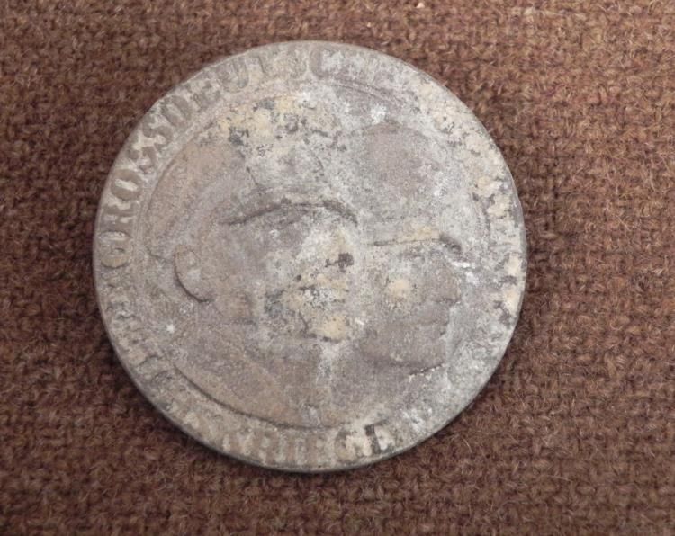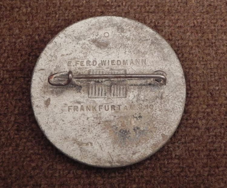 RARE GROSSDEUTSCHLAND REICHSKRIEG MEDAL--MAKER MKD SHOWS TWO NAZI OFFICERS ON FRONT--REVERSE IS PINBACK AND READS "E FERD WIEDMANN-FRANKFURT"