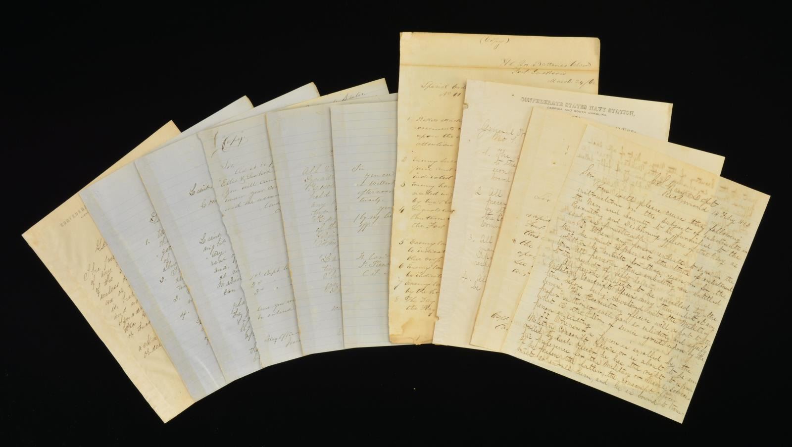 50. Feb. 14, 1863, Secretary of Navy Stephen Mallory to French Forrest to Josiah Tattnall. Instructions on recruiting, enlistments and bounty to be paid. CONDITION: good overall. (02-17731-5/JS). $2000-3000.
