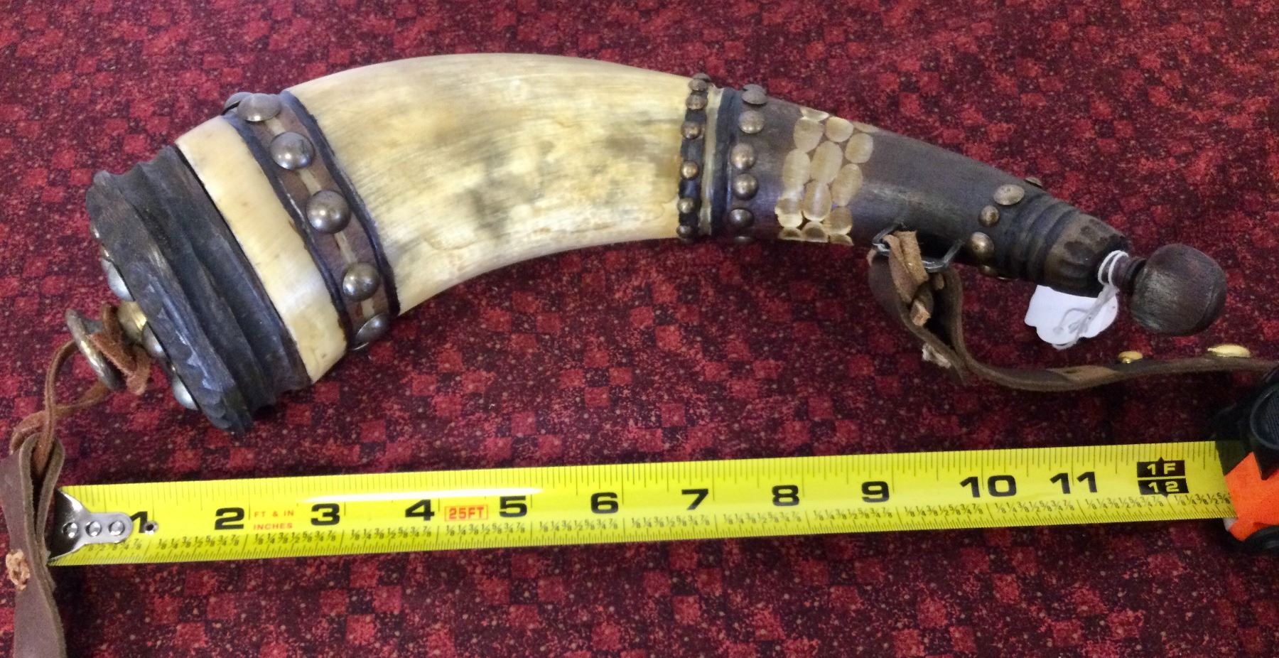 You are bidding on a rarely ever seen for sale, genuine carved bufflo horn powder horn, a great addition to your collection