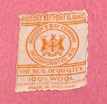 Provided for auction in this lot is a RARE full rose toned Hudson Bay Trading Company, 4 point, 100% wool blanket. The tag on the blanket attributes it to the early to mid 1900's, and reads "Hudson's Bay Point Blanket - Hudson's Bay Company Incorporated 1670 - The Seal of Quality - 100% Wool - MADE IN ENGLAND". The blanket is solid rose pink, and has a single deep rose band at each end. Overall, the blanket shows very good condition for age. The blanket measures