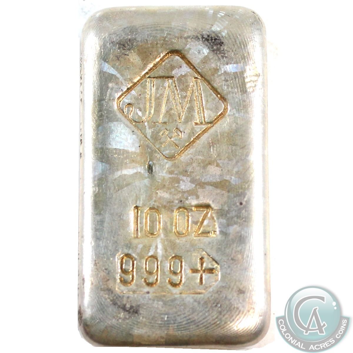 RARE Johnson Matthey 10oz Fine Silver Bar (Tax Exempt). This example contains the Large Logo with Wide spacing on the Purity Stamp. Estimated Mintage of only 2000
