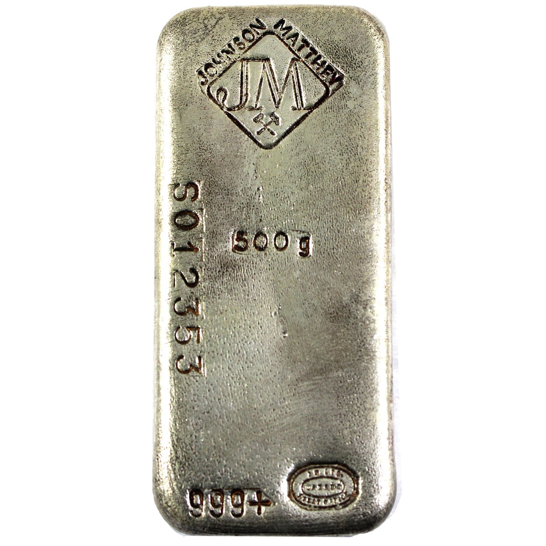 RARE! Johnson Matthey 500g Fine Silver Bar (Tax Exempt). Serial # S012353. Less than 2000 mintage.