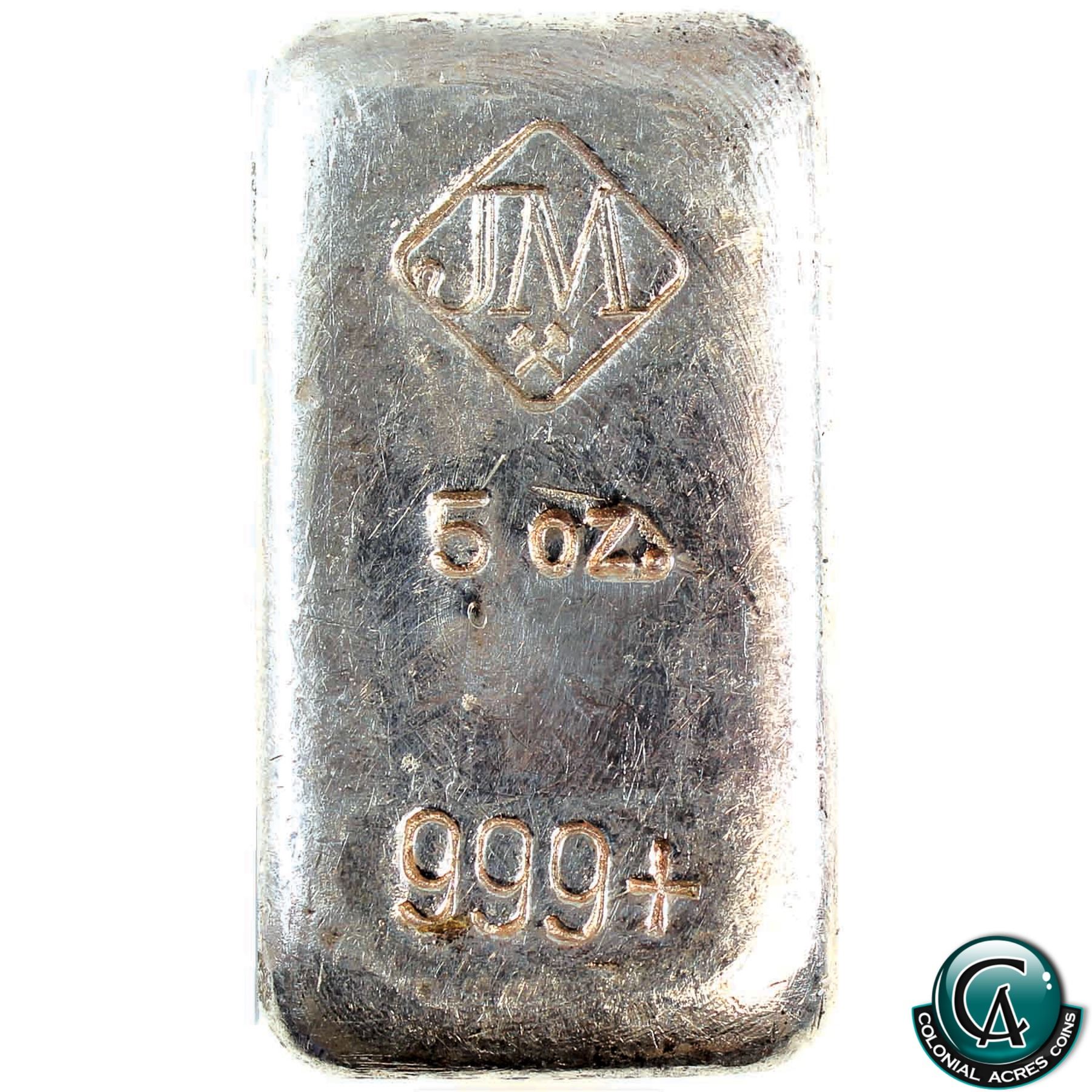 RARE Johnson Matthey - United States 5oz Cast Fine Silver Bar (Tax Exempt). Estimated mintage of only 500 Produced!