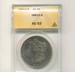 1883-S MORGAN SILVER DOLLAR SLABED BY ANACS GRADE AU 53, THE OLDEST GRADING COMPANY IN THE US AND ONE OF THE BEST."NOTICE" THIS IS A GRADE AU 53 NOT JUST A GRADE AU 50. THIS COIN IS A RARE & KEY DATE. IF YOU LOOK IT UP IN THE OFFICIAL RED BOOK YOU WILL NOTICE IT LIST A 1883-S GRADE AU50 VALUE AS $220 AND A GRADE AU 53 VALUE NOT LISTED. IT WOULD BE WORTH BETWEEN $220 AND THE NEXT PRICE LISTING OF $650