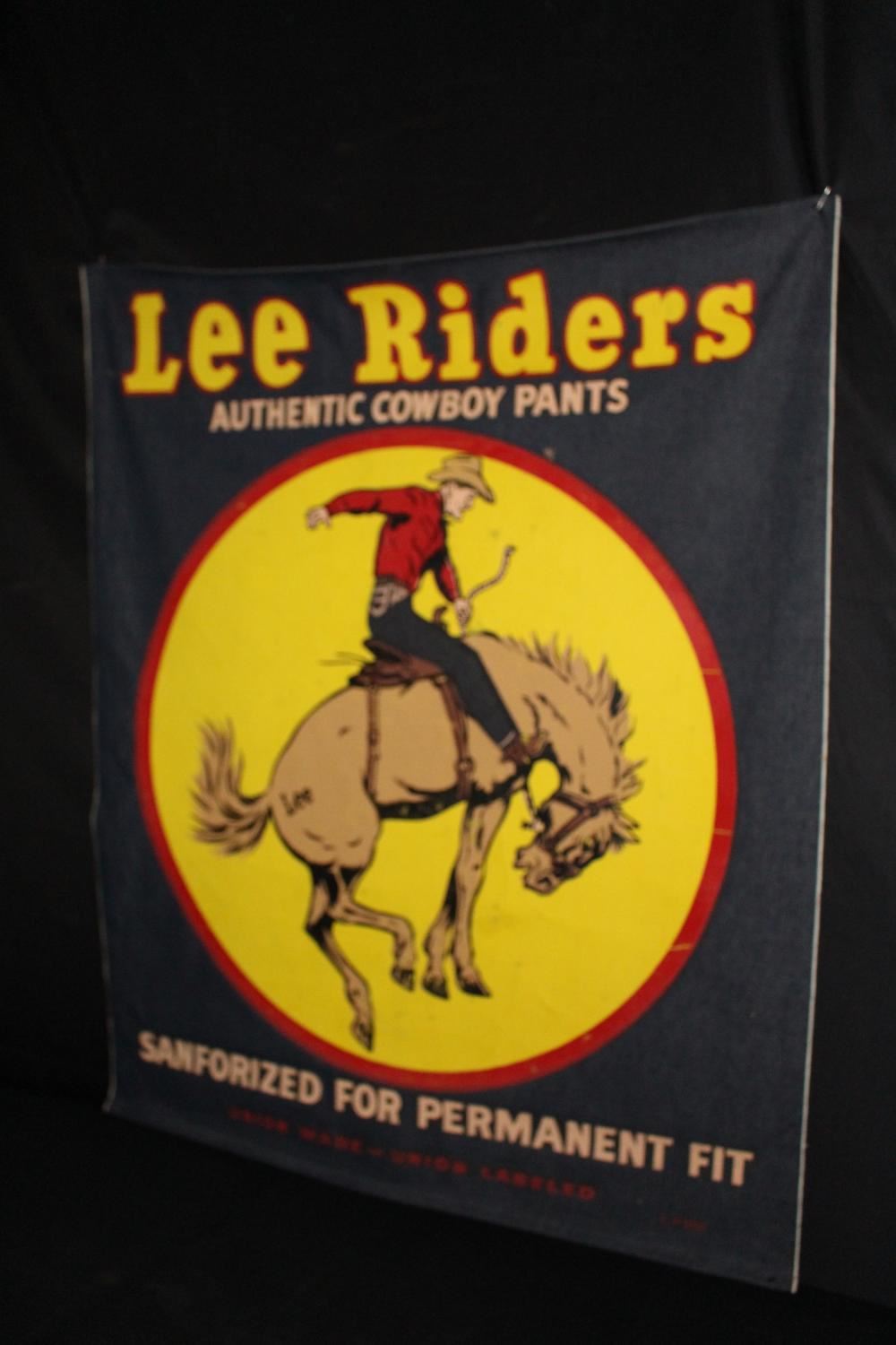 1 SIDED DENIM SIGN. 39X47. EXCELLENT CONDITION. APPROXIMATE SHIPPING COST $25 TO $45. THIS ITEM IS GUARANTEED TO BE OLD AND ORIGINAL.