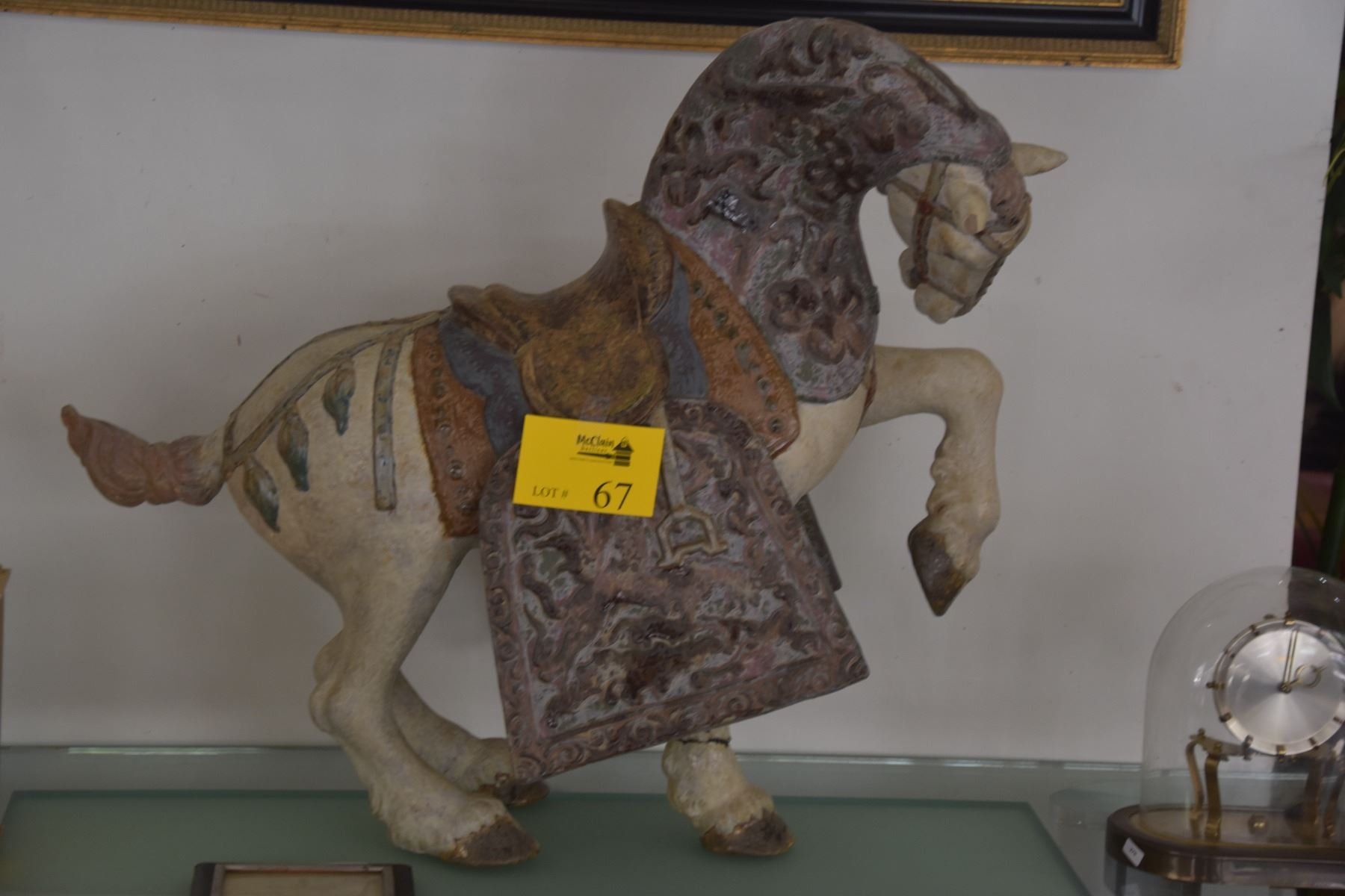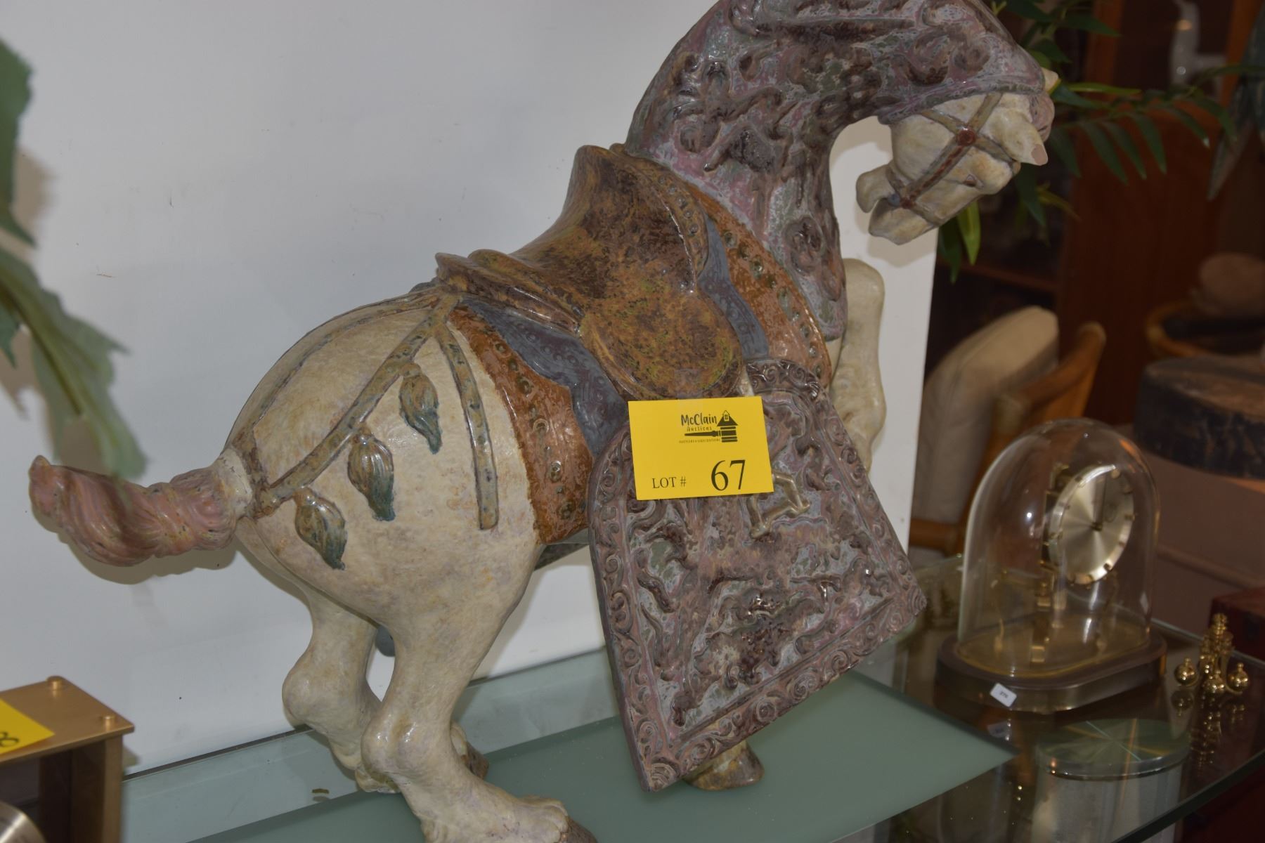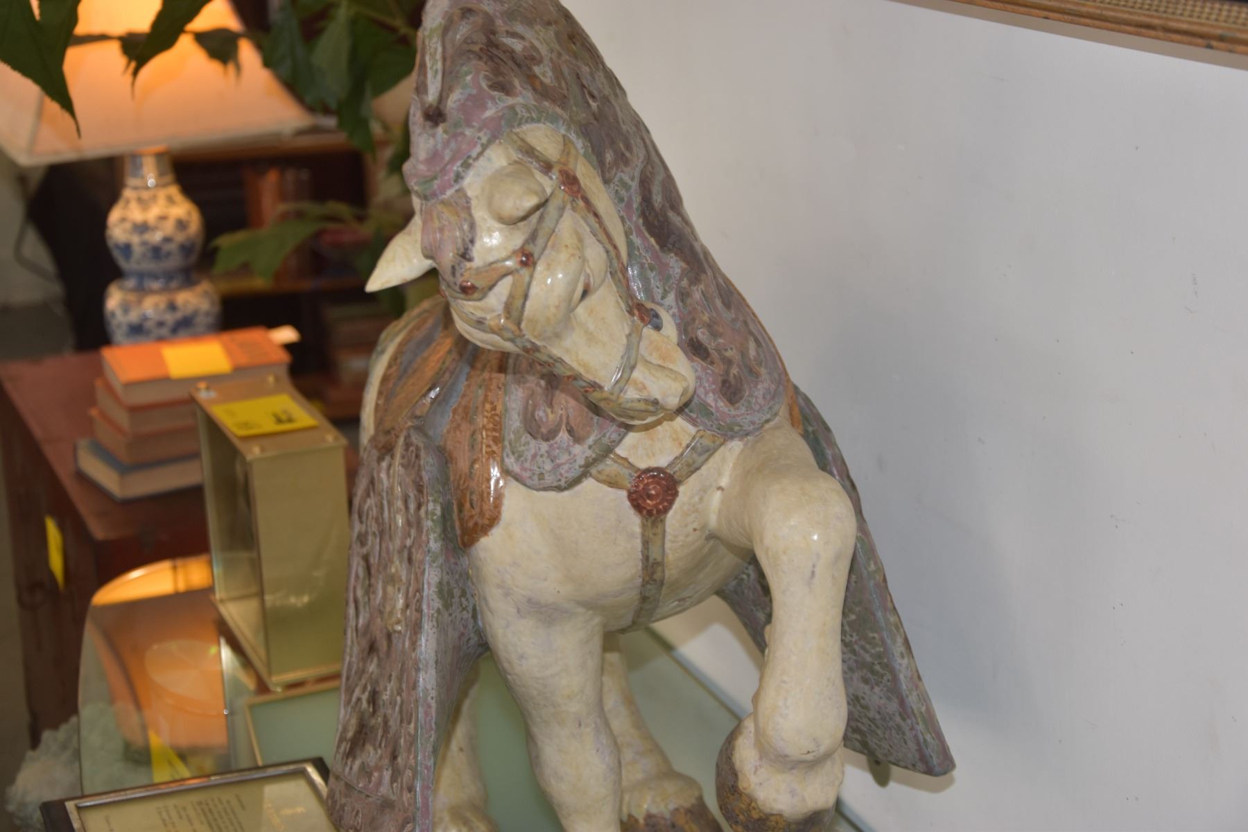RARE LLADRO CERAMIC TANG STYLE HORSE SCULPTURE; SIGNED & DATED FEB 1978 (W/REPAIR TO LEG) (31" X 29")