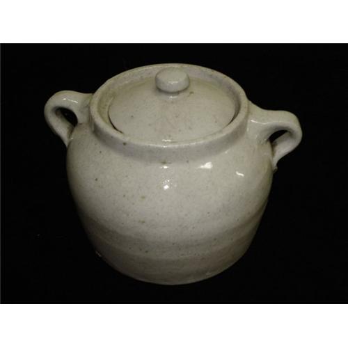 RARE, ANTIQUE BEAN POT, MADE, SIGNED, BY (NOT EXISITING ANY MORE)MEDALTA POTTERIES, RUSTIC, PRIMITIVE, BUT LOVELY, DONE IN BEIGE-GREY COLOR, IN VERY GOOD CONDITION,NO CRACKS OR CHIPS, THERE IS ON INSIDE GLAZE CRAZING AND A SOME ON OUTSIDE, THIS IS UNDERSTANDABLE, SINCE POTS LIKE THESE ARE USED TO BAKE THE BEANS, STILL VERU MUCH USABLE FOR YEARS AND YEARS TO COME, THERE IS SMALL ROUGHNESS ON THE BOTTOM EDGE, DEFINATELLY FACTORY IMPERFACTION, LOVE THE HANDLES AND THIN LID, MEASURING ABOUT 5 1/4 inch x 5 3/4 inch in diam., US Buyer to pay 9.50 for shipping plus insurance.THANKS.