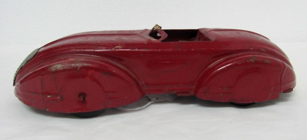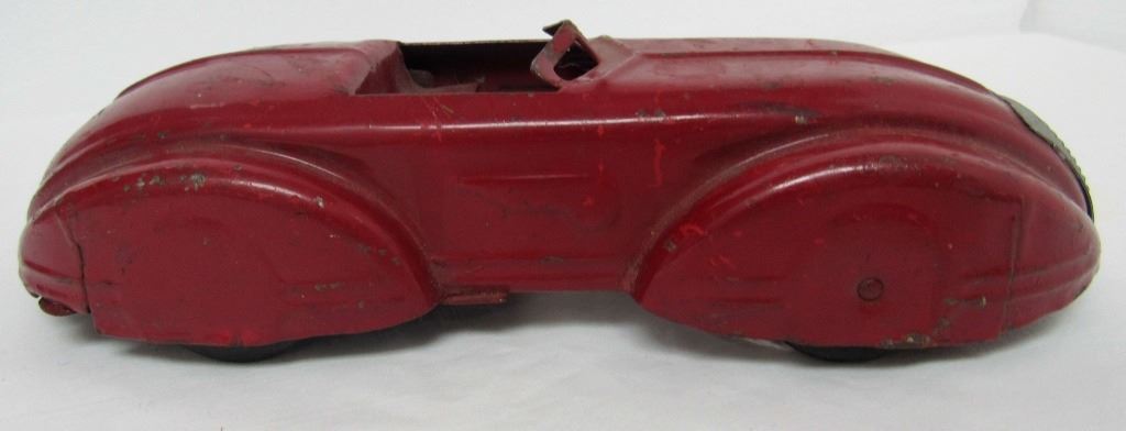 FRICTION DRIVE. PRESSED STEEL. MEASURES 10" LONG. FRICTION DRIVE DOESN’T WORK CORRECTLY. MAY JUST NEED A GOOD CLEANING AND OILING.