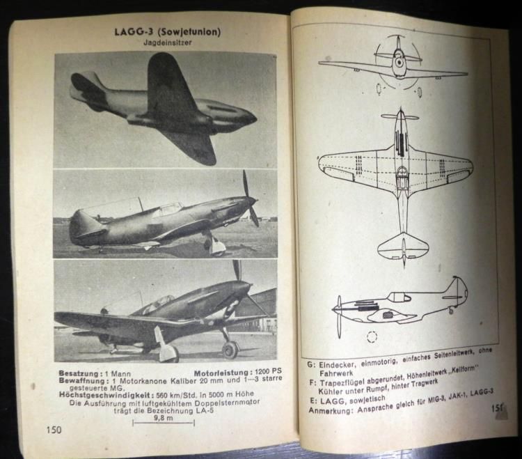 HERE IS A RARE NAZI "KRIEGSFLUGZEUGE" ENEMY WAR PLANE RECOGNITION BOOK. GREAT ORIGINAL BRINGBACK--1943 EDITION--166 PAGES--SHOW PHOTOS, AND ALL DETAILS ON ENEMY PLANES FROM BRITISH, AMERICA AND SOVIET--ALSO GERMAN AND ITALIAN PLANES--ALL IN GERMAN-BOOK IS 4 X 51/2"---ALSO HAS PRICING ON BACK COVER FOR CIVILIAN LUFTSCHUTZ.