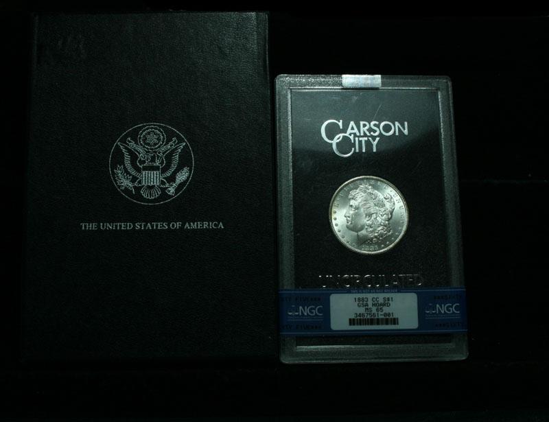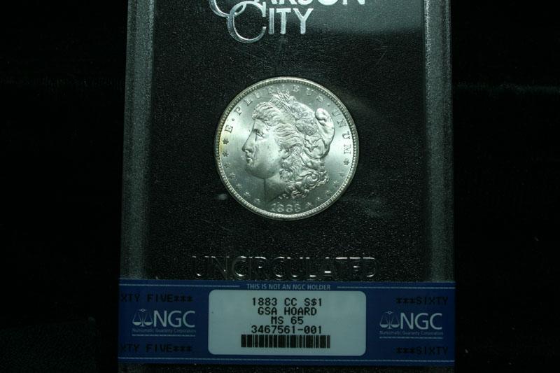 A rare GEM ms65 GSA. Most of the GSAs were not in GEM condition. This GSA has been graded by NGC, one of America's top 2 grading companies as GEM ms65. This example comes in the original Box After the US Government audited its vaults in the mid 70's they found a Hoard of Morgan Dollars in the basement vault in the federal reserve. Between 1973 and 1980 the Government Services Administration (GSA) Packaged these rare Morgan dollars and auctioned them off to the public. Coin World lists a GSA ms65 at $550. Estimated Value $500