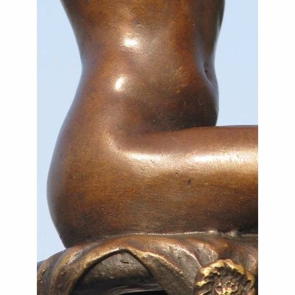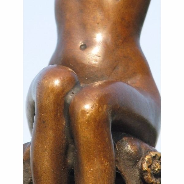 this auction is for a delightful beautiful young nude woman seated provocatively on a very ornate chair.........the whole is hot-cast in genuine bronze metalthis is a very three dimensional sculpture which I've found difficult to photo clearly today as it's raining........so photos taken outdoorsnote her very beautiful young face.......the detail of her curvaceous body.........her legs seductively crossed to expose her smooth skin..........all absolutely delightful!Condition: This sculpture is in a very good condition. Bronze Dimensions with Marble Base:Height 11" x Width 2"Weight :5 LBSInventory : 5426B46745 this auction is for a delightful beautiful young nude woman seated provocatively on a very ornate chair.........the whole is hot-cast in genuine bronze metalthis is a very three dimensional sculpture which I've found difficult to photo clearly today as it's raining........so photos taken outdoorsnote her very beautiful young face.......the