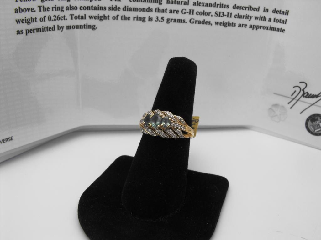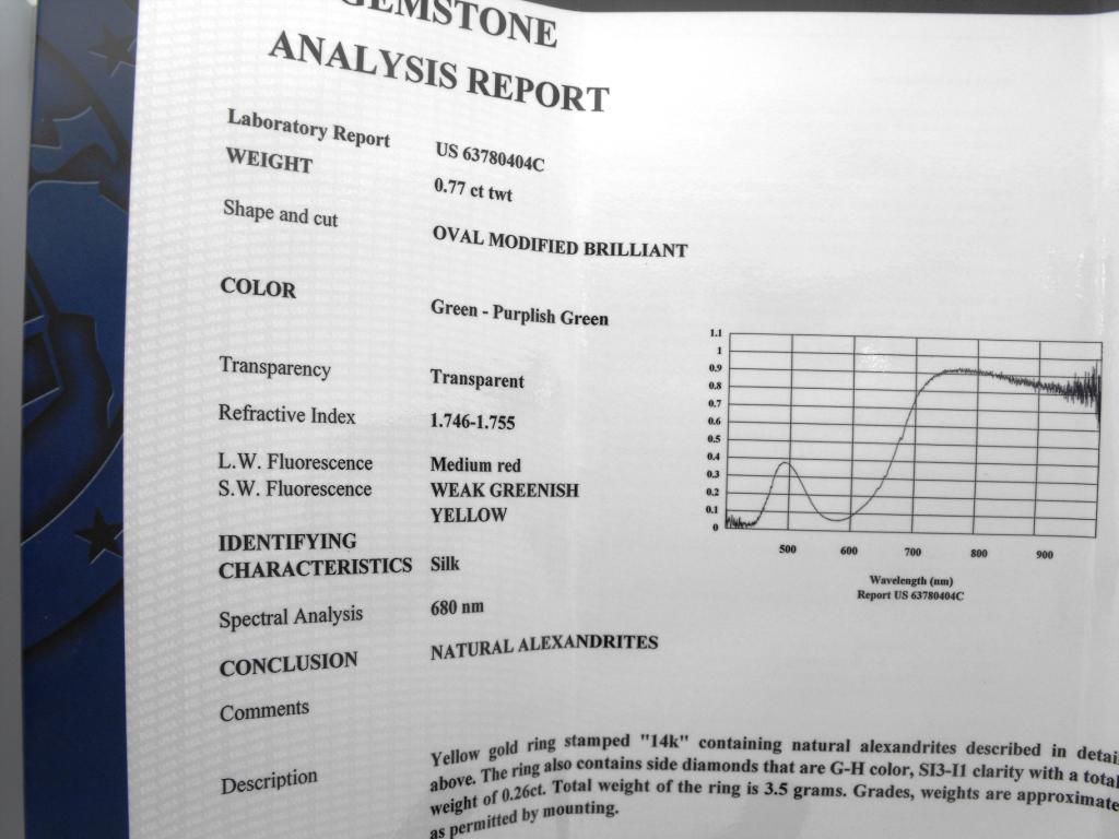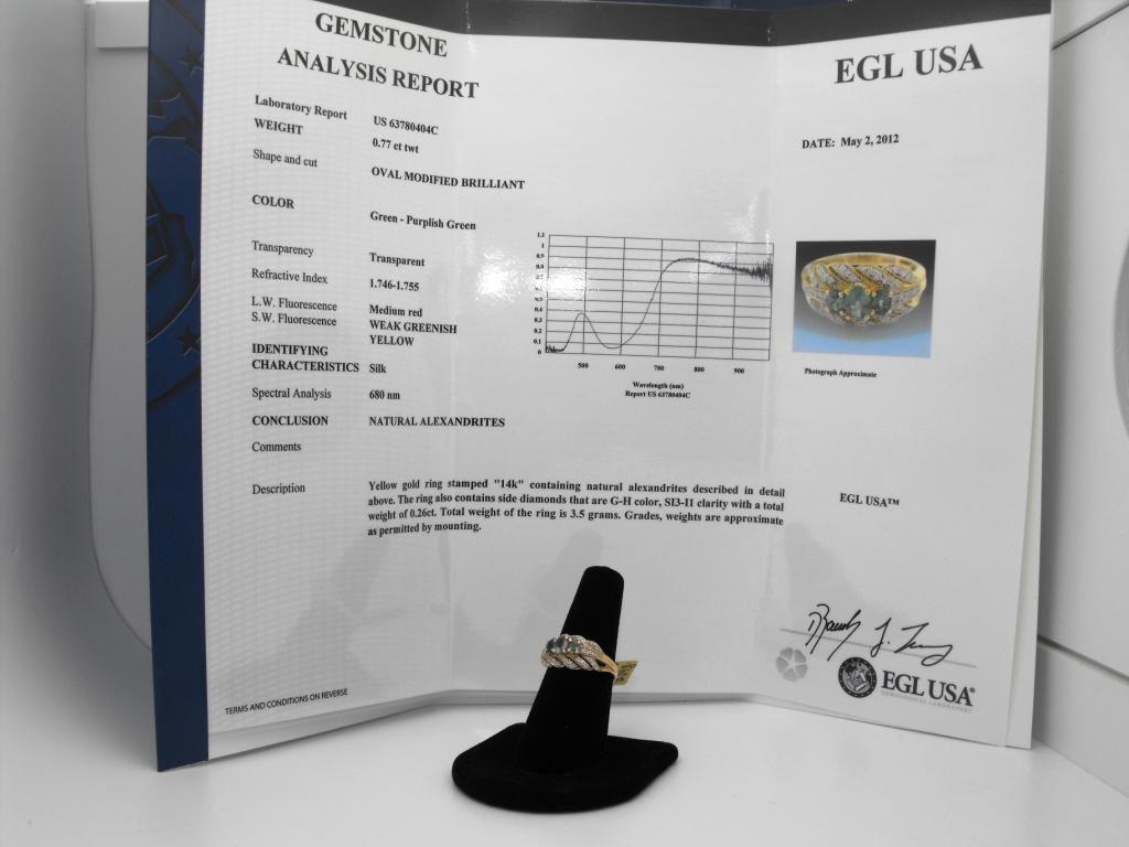 An EGL certified ALEXNADRITE ring in 14k yg.