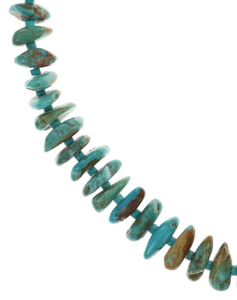 Featured in this lot is this rare vintage Navajo Kingman Turquoise necklace and earrings. The necklace features a wonderfully and professionally crafted nugget turquoise construction that is graduated from the clasp getting bigger closer to the center. The earrings shows a dangle design with nugget turquoise strung to the core of the earrings. The condition of this necklace and pair of earrings is good with no obvious signs of damage and shows good overall condition. The measurements of this necklace from clasp to clasp is 23 1/2" and the earrings measure 2" x 1/2". The collective weight of this necklace and earrings is 127.9g.