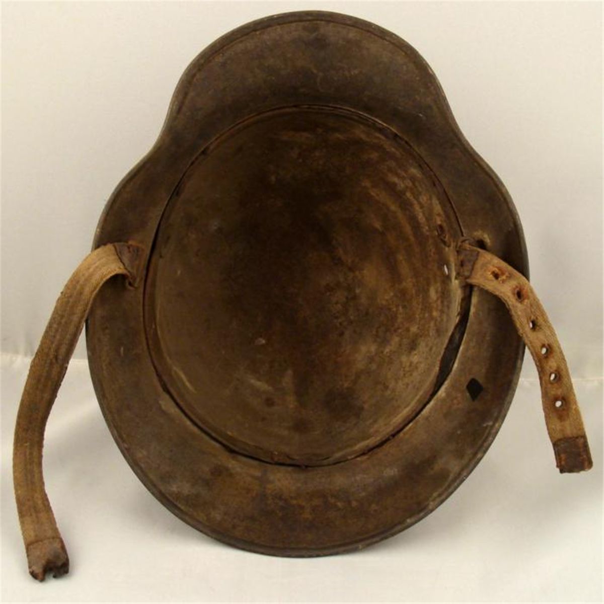 RARE ORIGINAL M16 EARLY NAZI FREIKORPS HELMET W/SWASTIKA PAINTED IN FRONT-BULLET HOLE ON SIDE OF HELMET-C.A.S.66 * EXTREMELY RARE EARLY ORIGINAL NAZI WWI M16 "FREIKORPS" HELMET WITH LARGE (REVERSED) SWASTIKA PAINTED IN FRONT (AGE FADED)-FREIKORPS WAS AN EARLY NAZI PARTY MEMBER GROUP FROM THE 1920'S & 30'S. (SEE REFERENCE BOOK GERMAN HELMETS BY GOODAPPLE-VOL 1-PG 136). HELMET HAS ALL RIVETS AND INSIDE RIM, BUT NO LEATHER. STAMPED C.A.S.66---GREEN IN COLOR--HAS BULLET HOLE ON LEFT SIDE--RARELY SEEN ORIGINAL *