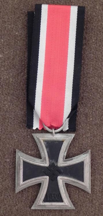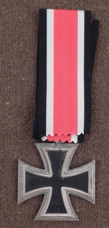 RARE ORIGINAL NAZI IRON CROSS & FULL RIBBON-MAGNETIC CORE-SWASTIKA CENTER * REVERSE MARKED "1813"--RING STAMPED "5" *