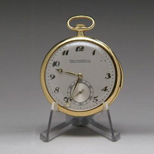 RARE PATEK PHILIPPE 18K 29 JEWEL ONE MINUTE REPEATER POCKET WATCH. Patek Philippe 18K minute repeater. Dial signed "Patek. Philippe and Cie Geneva Switzerland". Movement numbered 198003, inside of cover is number 411867 with inscription "H. D. McL from R. H. F. 1920-1927in.. PROVENANCE: Hugh Russell Estate. CONDITION: The number 2 on the dial is off but present. Not presently running but does chime the correct time. Probably needs cleaning. 9-26222