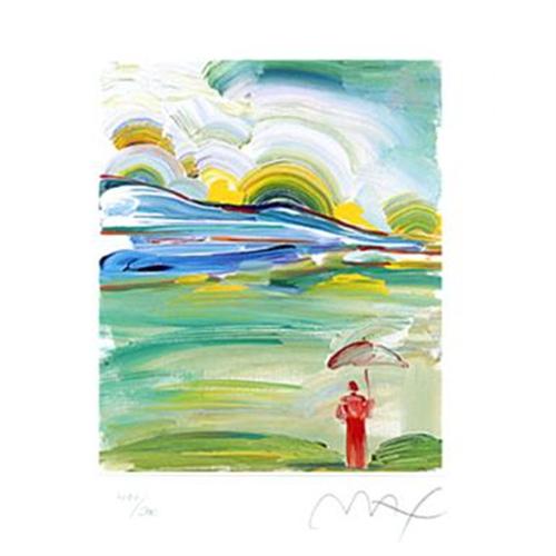 LUSH PAINTERLY UMBRELLA MAN SUNRISE HAND SIGNED LITHOGRAPH. OWN IT