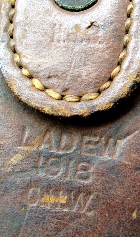 WITH LEATHER SCABBARD. FLAMING BOMB 1917. NEEDS CLEANED UP BUT IN GOOD CONDITION. SCABBARD SAYS LADEN 1918 CHW. NEEDS LEATHER TREATMENT.