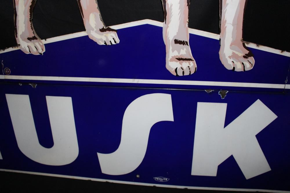 SSP, 72 X 56 1/2. SIGN IS 4 PIECES. SOMEONE MADE A NICE WOOD BACK TO SUPPORT THE SIGN. OVERALL VERY NICE CONDITION WITH A FEW CHIPS. APPROXIMATE SHIPPING COST $125 TO $400. THIS ITEM IS GUARANTEED TO BE OLD AND