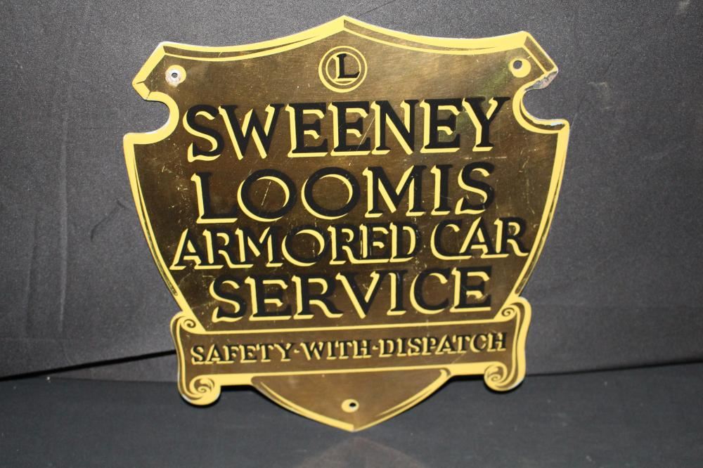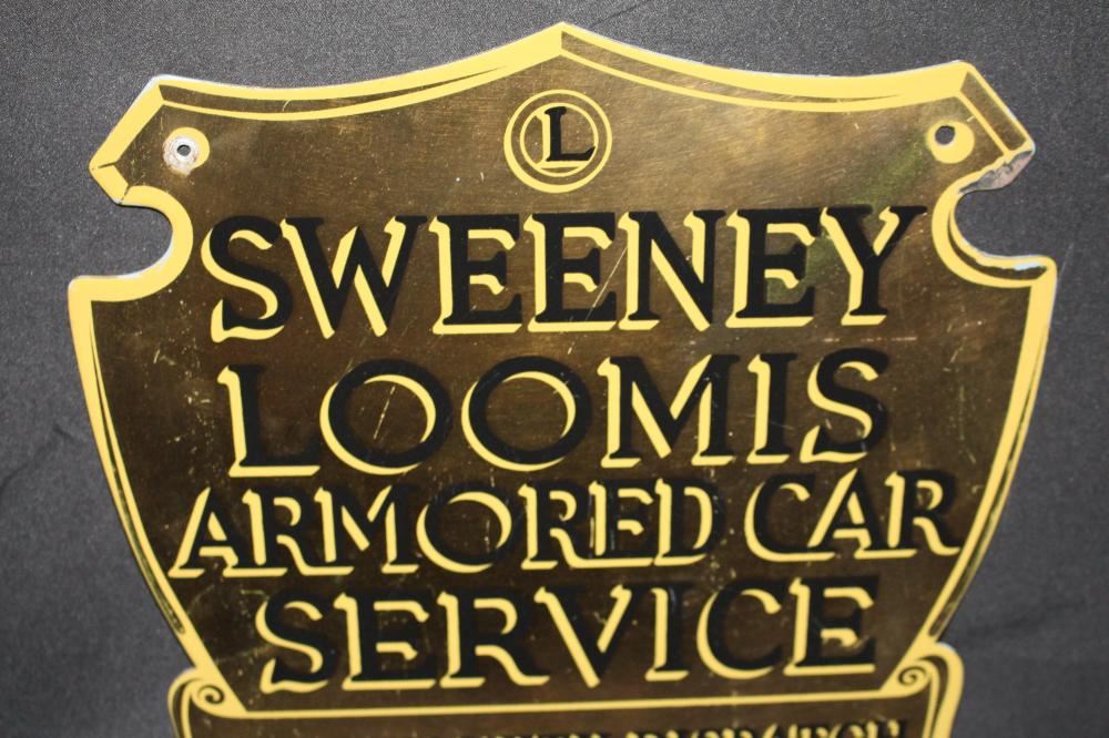 SSP, 12 3/8 X 14 1/8. GREAT CONDITION. RARE GOLD PORCELAIN. THIS IS A TRUCK DOOR SIGN OFF AN ARMORED CAR. APPROXIMATE SHIPPING COST $20 TO $25. THIS ITEM IS GUARANTEED TO BE OLD AND ORIGINAL.