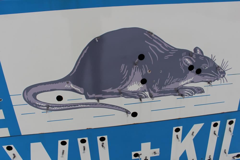 1 SIDED. 84X60X6. GREAT CONDITION. RAT GRAPHICS. THIS SIGN WAS FROM WIL-KIL IN MADISON WISCONSIN. APPROXIMATE SHIPPING COST $150 TO $450. THIS ITEM IS GUARANTEED TO BE OLD AND ORIGINAL.