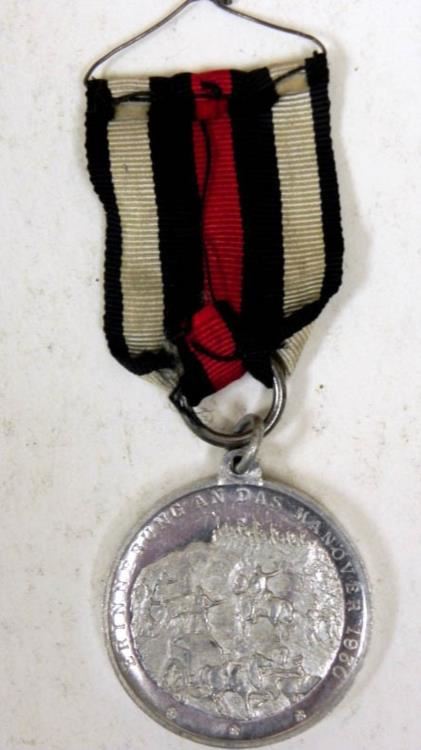 HERE IS A RARE PRE-NAZI HINDENBURG FOR PRESIDENT MEDAL W/RIBBON. HINDENBURG ON FRONT--REVERSE HAS RAISED BATTLE SCENE FRON WWI W/SOLDIERS WITH SPIKED HELMETS AND READS "ERINERUNG AN DAS MANOVER 1930".