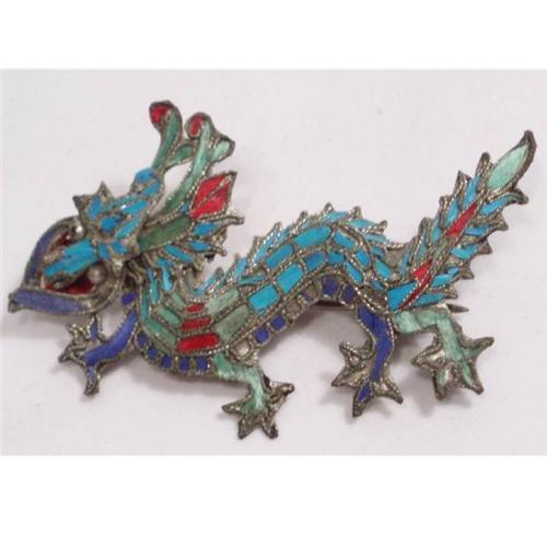 Kingfisher feathers have been used to decorate headdresses, hairpins, earrings and other types of personal ornament, as well as larger items such as bed hangings, screens and lanterns and even to decorate costumes in Chinese opera. This has been done since since the T'ang Dynasty (AD 618-907). These brilliant blue feathers came from water kingfishers (Alcedinidae) and wood kingfishers (Halcyonidae), which were common in China until demand for their feathers nearly caused their extinction. In China, the finest pieces are the province of museums, as they should be. Kingfisher feather was cut to shape and inlayed into a silver or gold filigree base. Filigree was also combined with granulation to form hairpins in the shape of butterflies and flowers, which were often augmented with jade or pearls. These ornaments continued to be fashionable in China through the Victorian era. As you can see this dragon is a rarity indeed being he is a figural and he has the colors to the feathers. This is 2 ½" long and he has a three dimensional head that is made in layers. I couldn?t get a close-up for you to see each feather, but when you see this up close in person you will be able to tell. He is very very old (1644-1911 A.D) and he is very very rare.