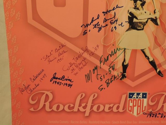 RARE ROCKFORD PEACHES AUTOGRAPHED REUNION POSTER