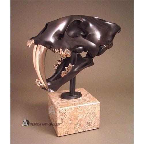 RARE! SABER TOOTH TIGER SKULL FOSSIL BRONZE SCULPTURE